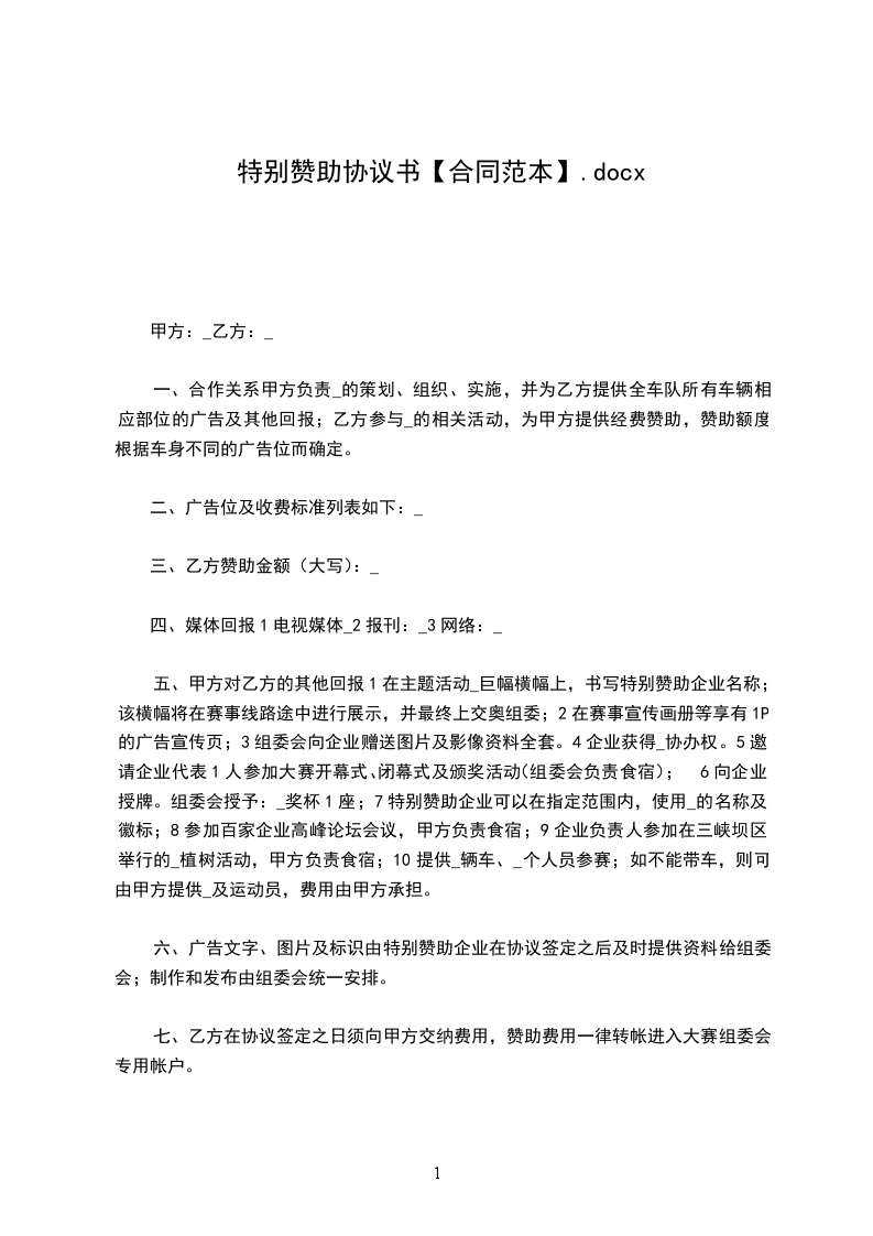 7.特别赞助企业可以在指定范围内,使用______________的名称及徽标;