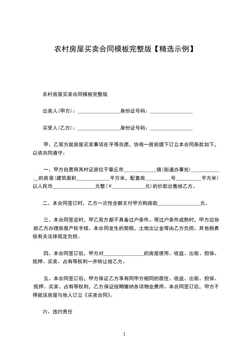 农村房屋买卖合同模板完整版