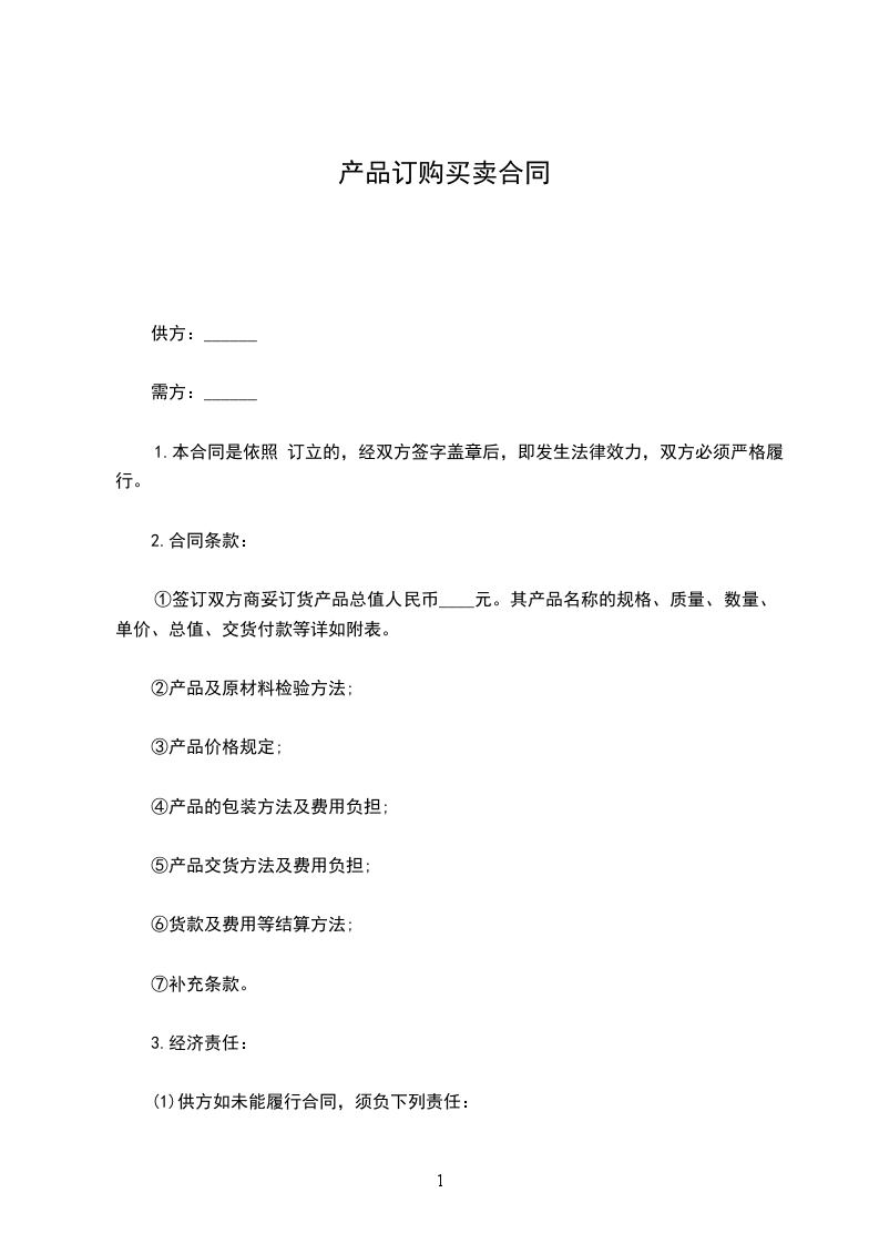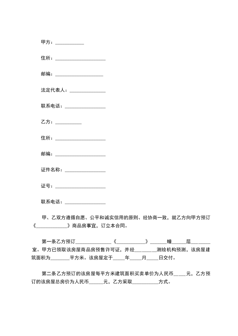 第一条乙方和甲方订购_______货物,甲方应于____日内交付乙方。