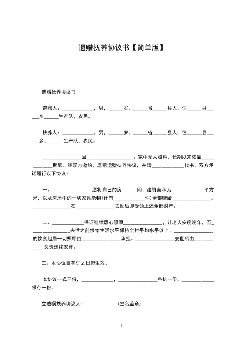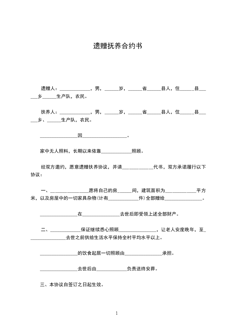 遗赠人:_____________,男,______岁,______省______县人,住______县______乡______生产队,农民。