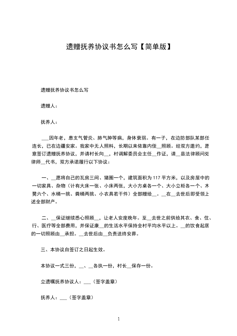 遗赠抚养协议书