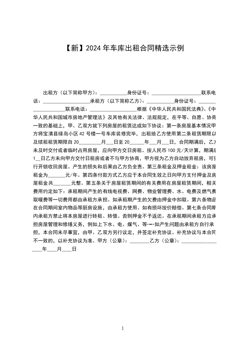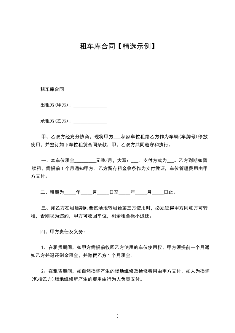 租车库合同