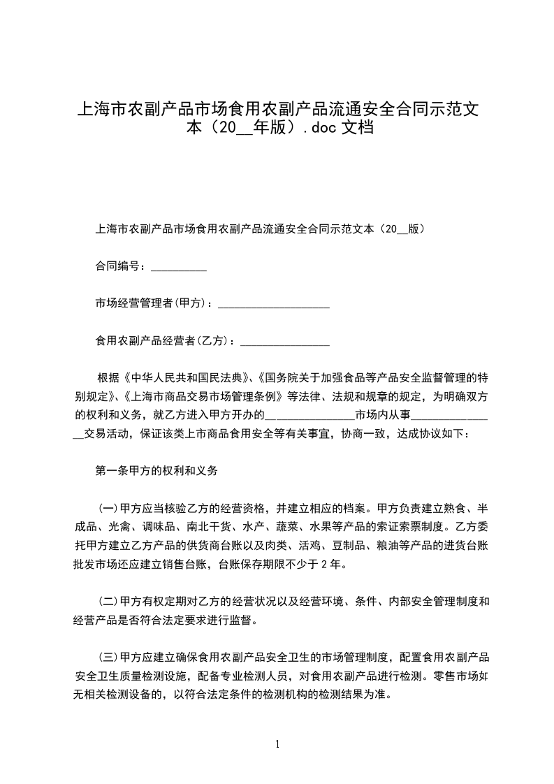 上海市农副产品市场食用农副产品流通安全合同示范文本(20__版)