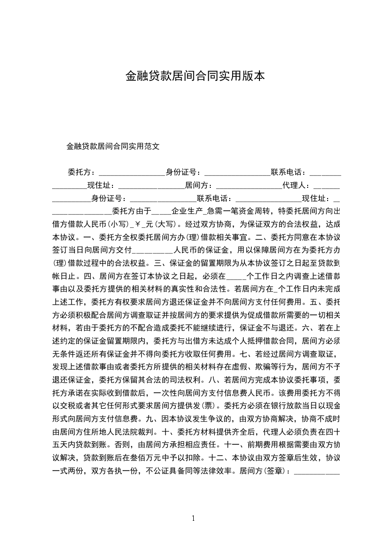 金融贷款居间合同实用范文