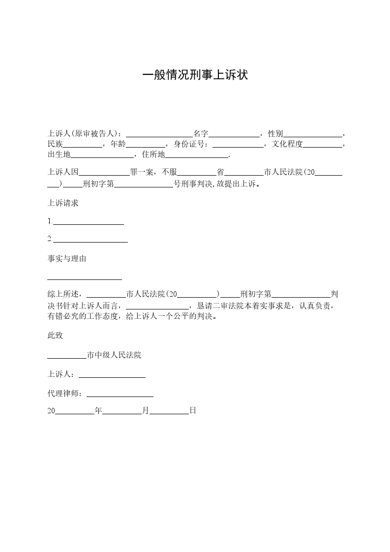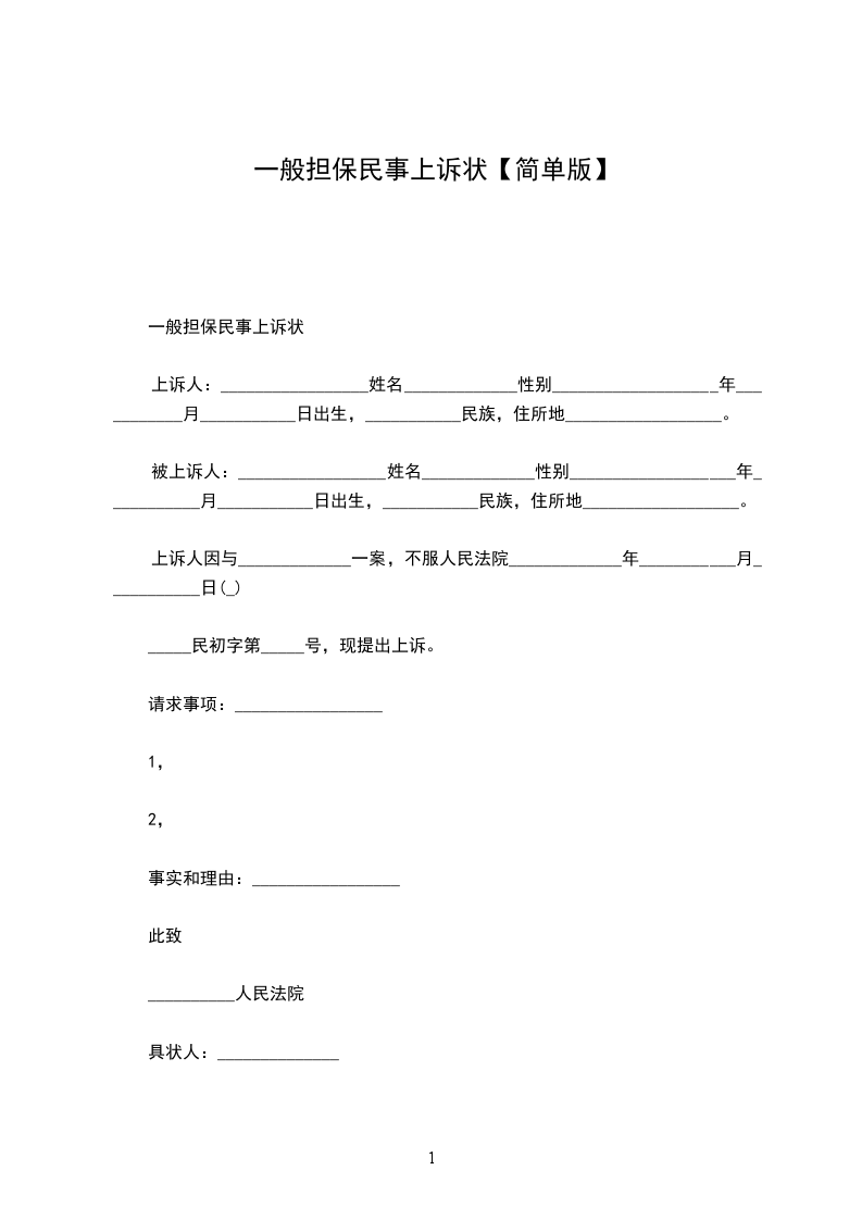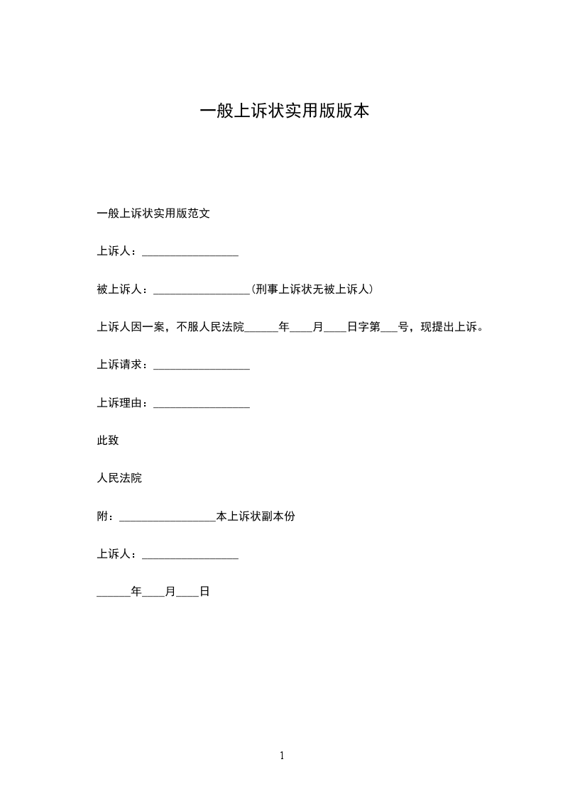 上诉状一般范文