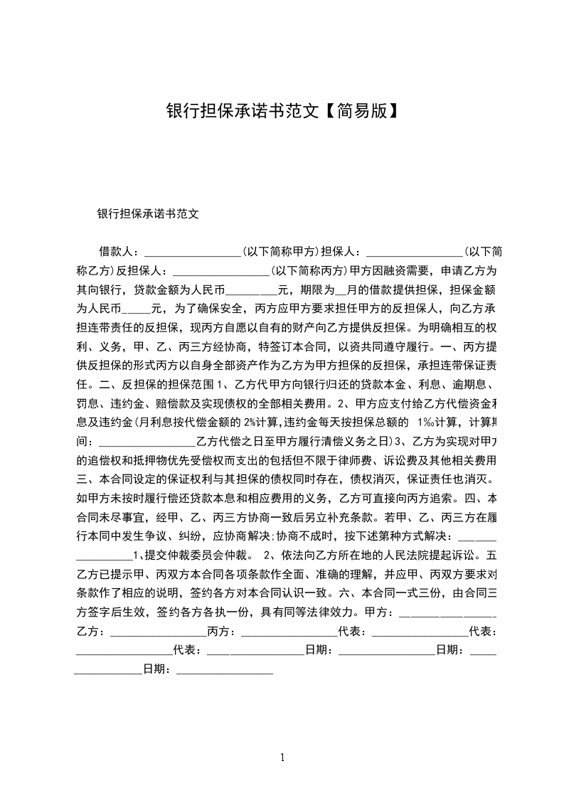 银行担保承诺书范文