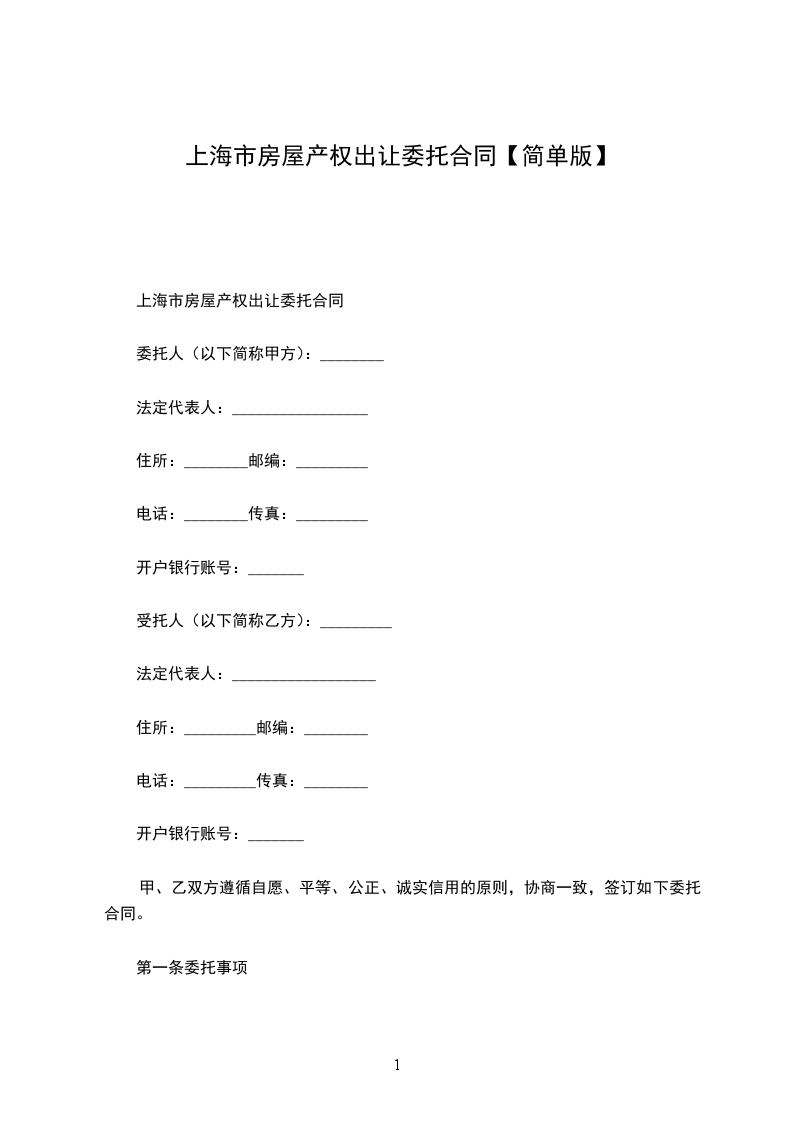 上海市房屋产权出让委托合同