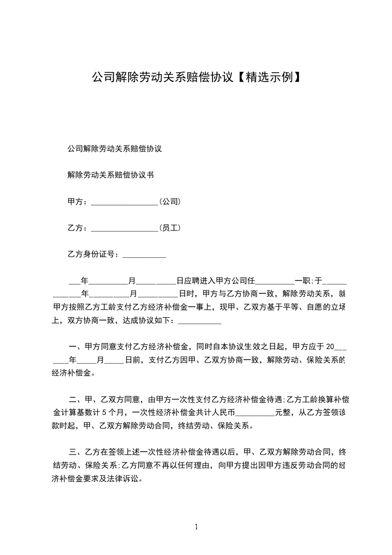 一、甲方同意支付乙方经济补偿金,同时自本协议生效之日起,甲方应于20_______年_____月_____日前,支付乙方因甲、乙双方协商一致,解除劳动、保险关系的经济补偿金。