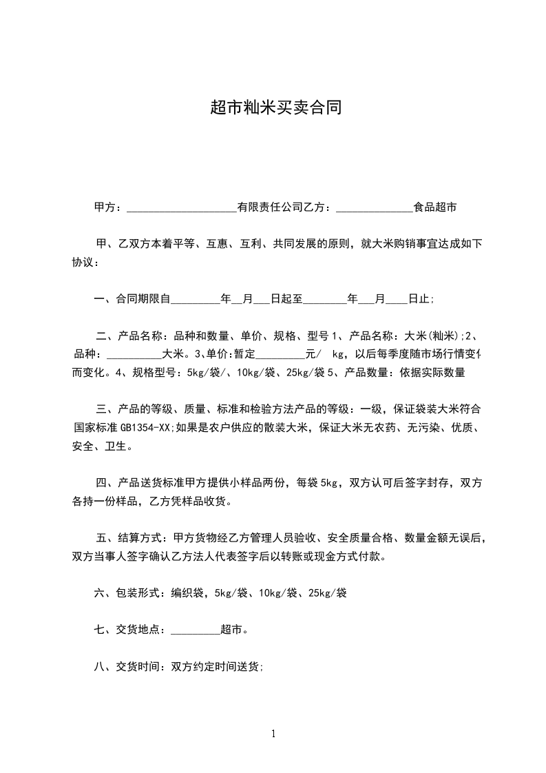 甲、乙双方本着平等、互惠、互利、共同发展的原则,就大米购销事宜达成如下协议: