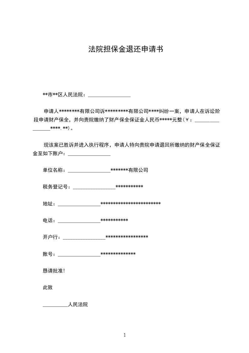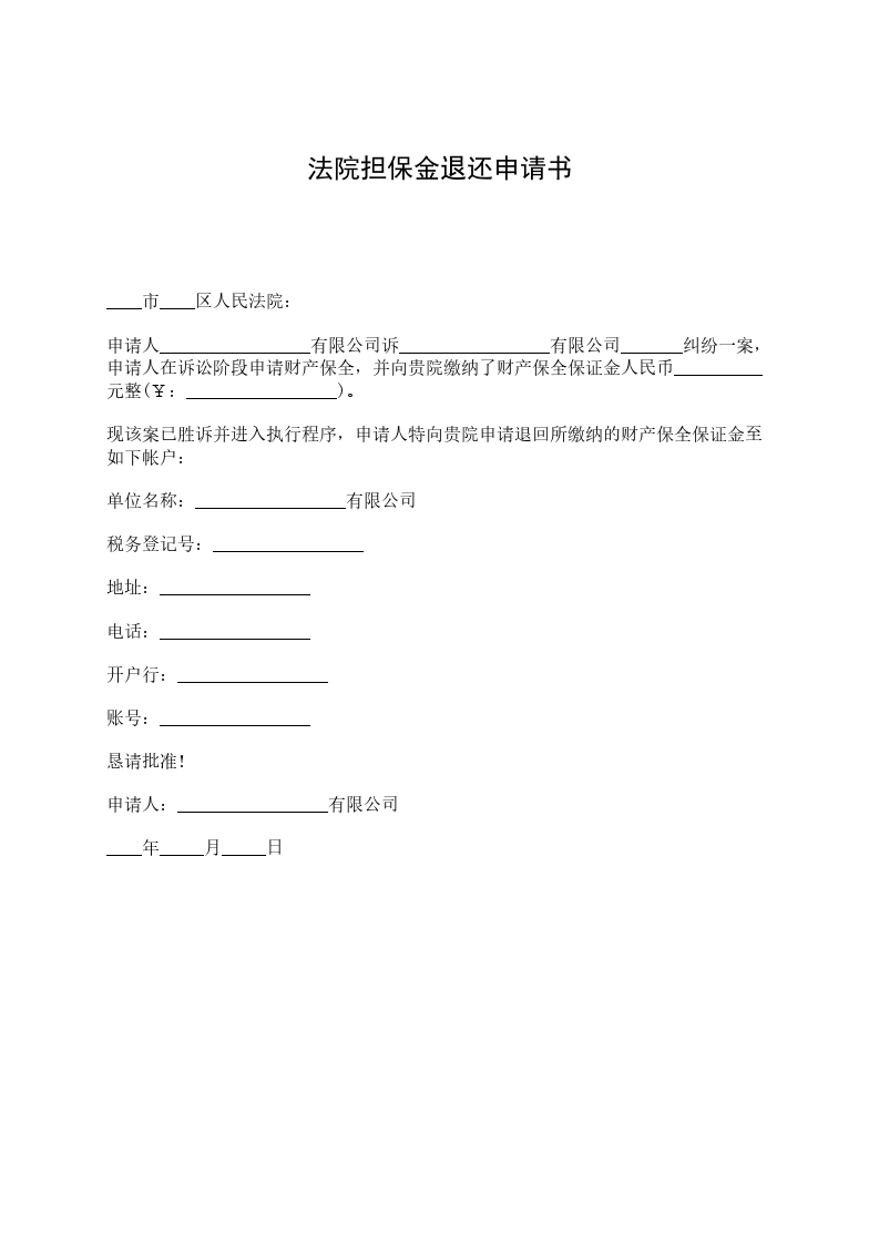 退还质保金申请书范本