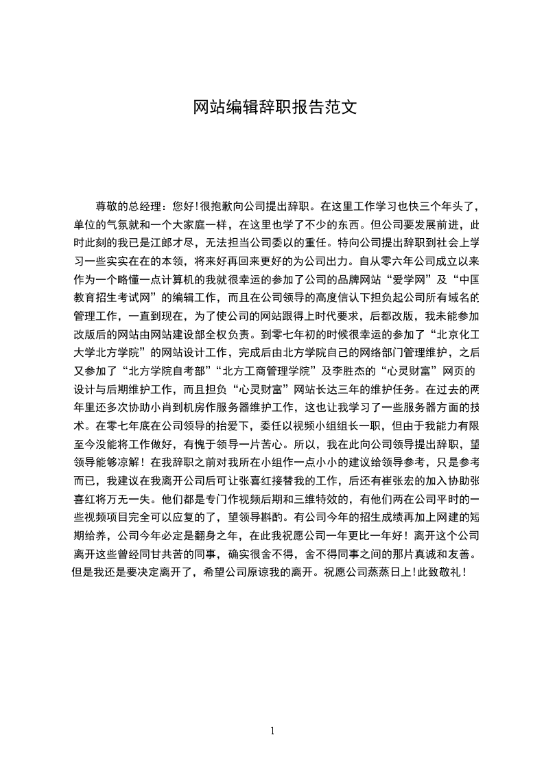 网站编辑辞职申请书范文
