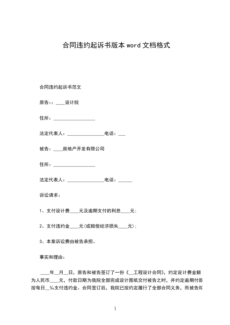 合同违约起诉书范文