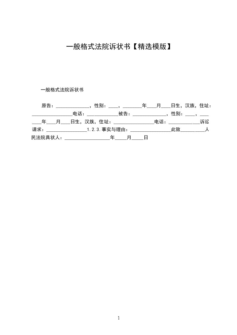 一般格式法院诉状书