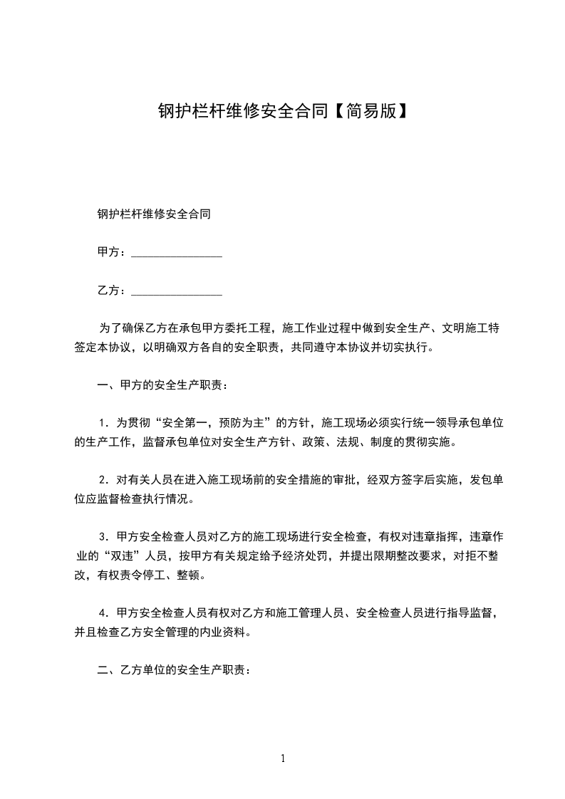 钢护栏杆维修安全合同