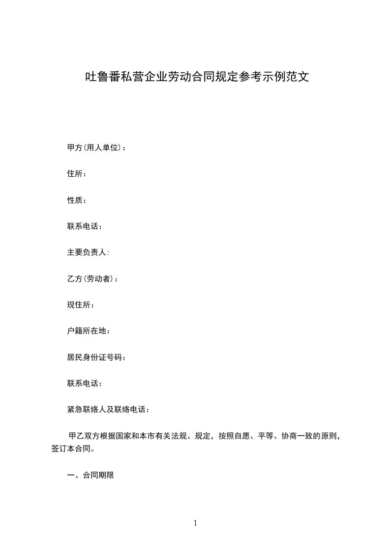 吐鲁番私营企业劳动合同规定