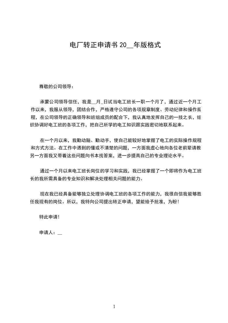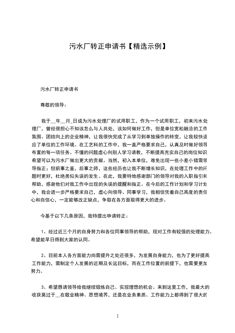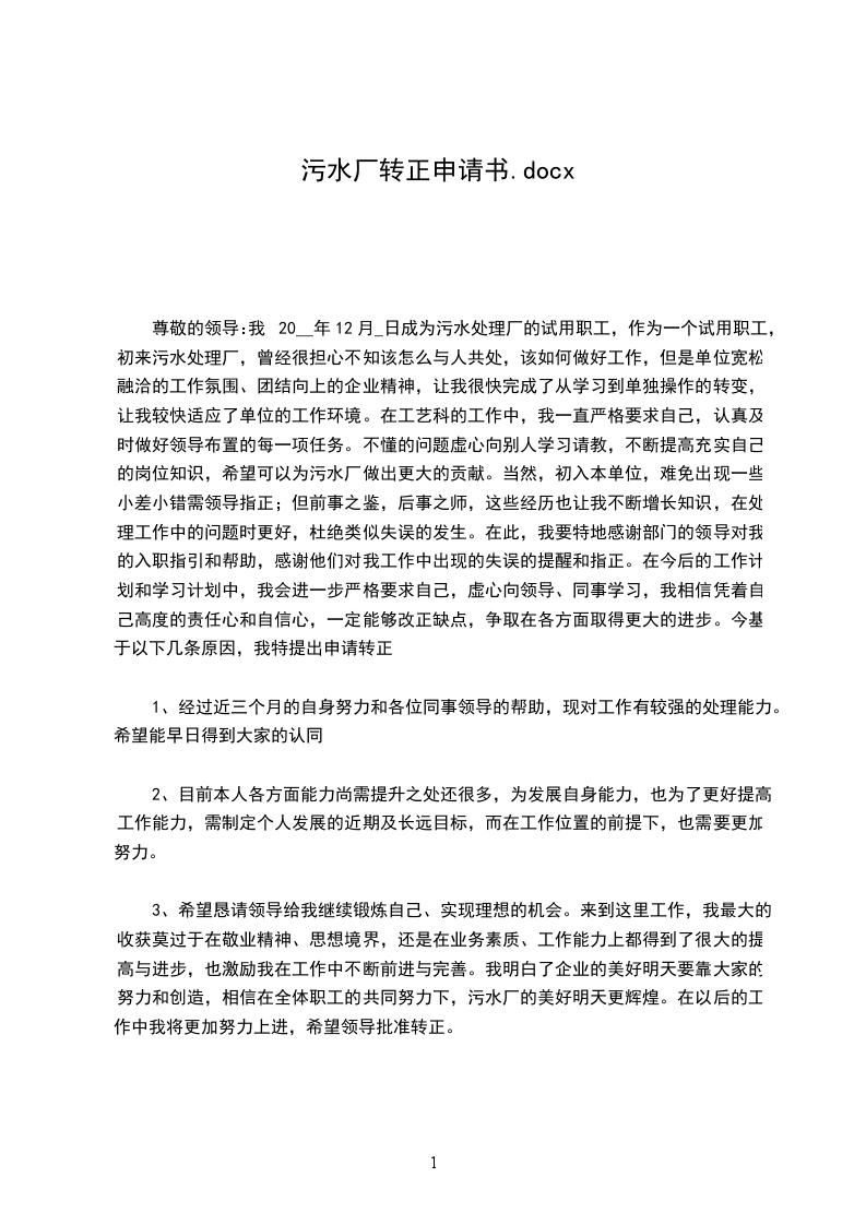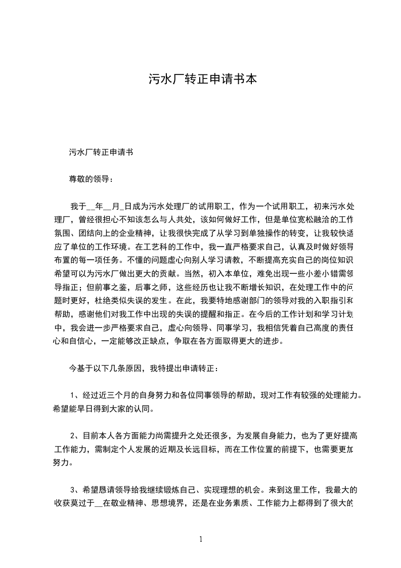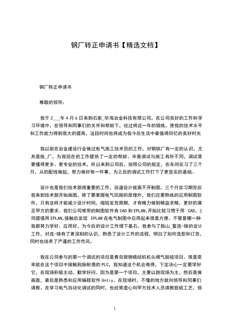 钢厂转正申请书
