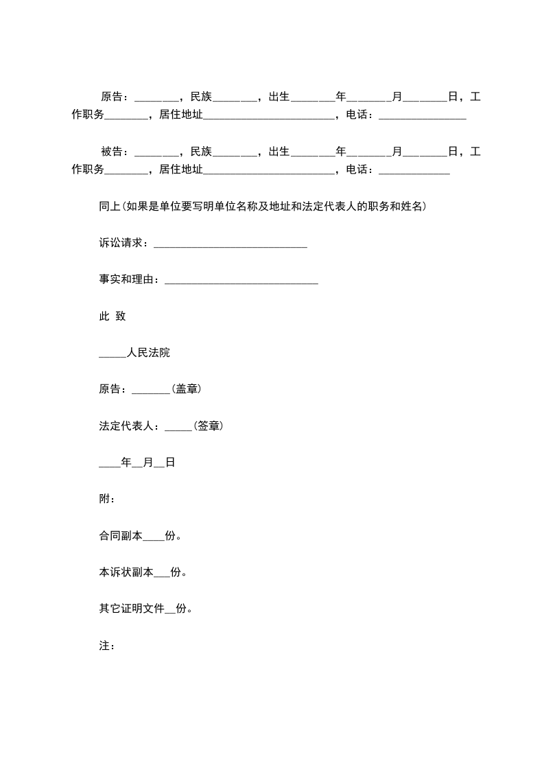 原告:______________,性别:____,________年____月____日生,汉族,住址:_________________电话:_____________