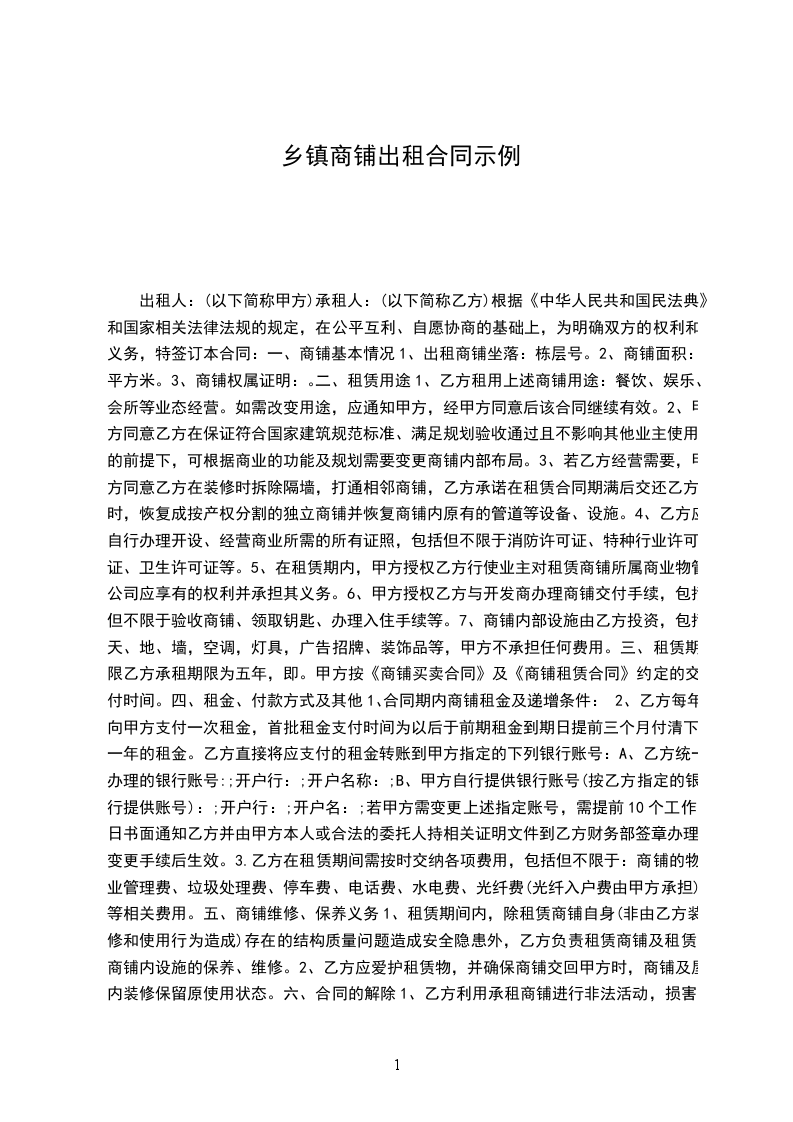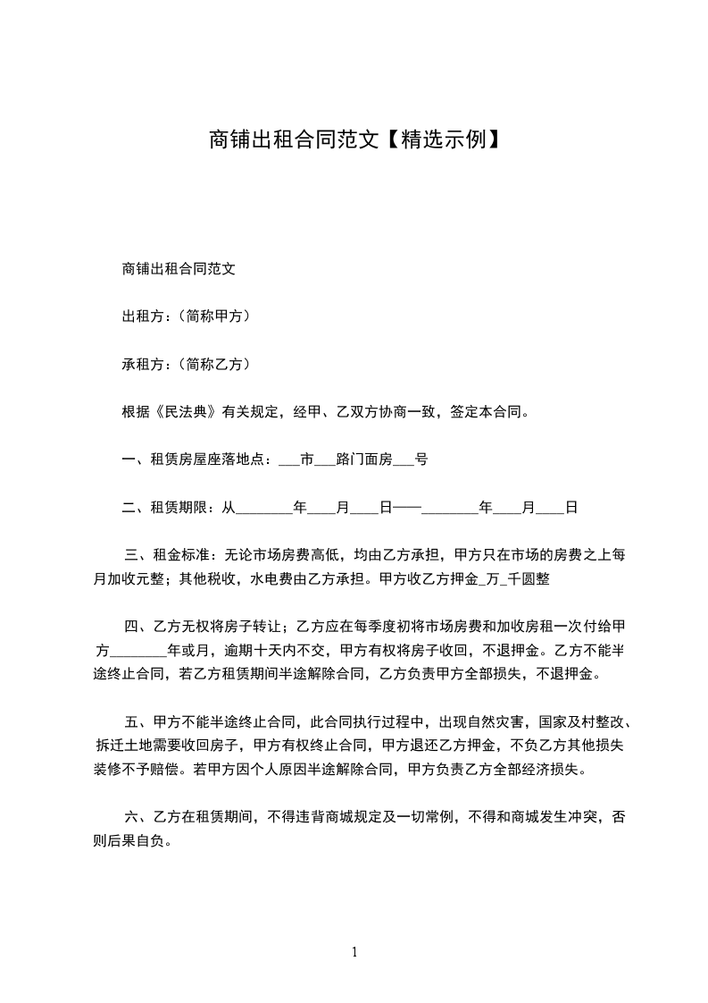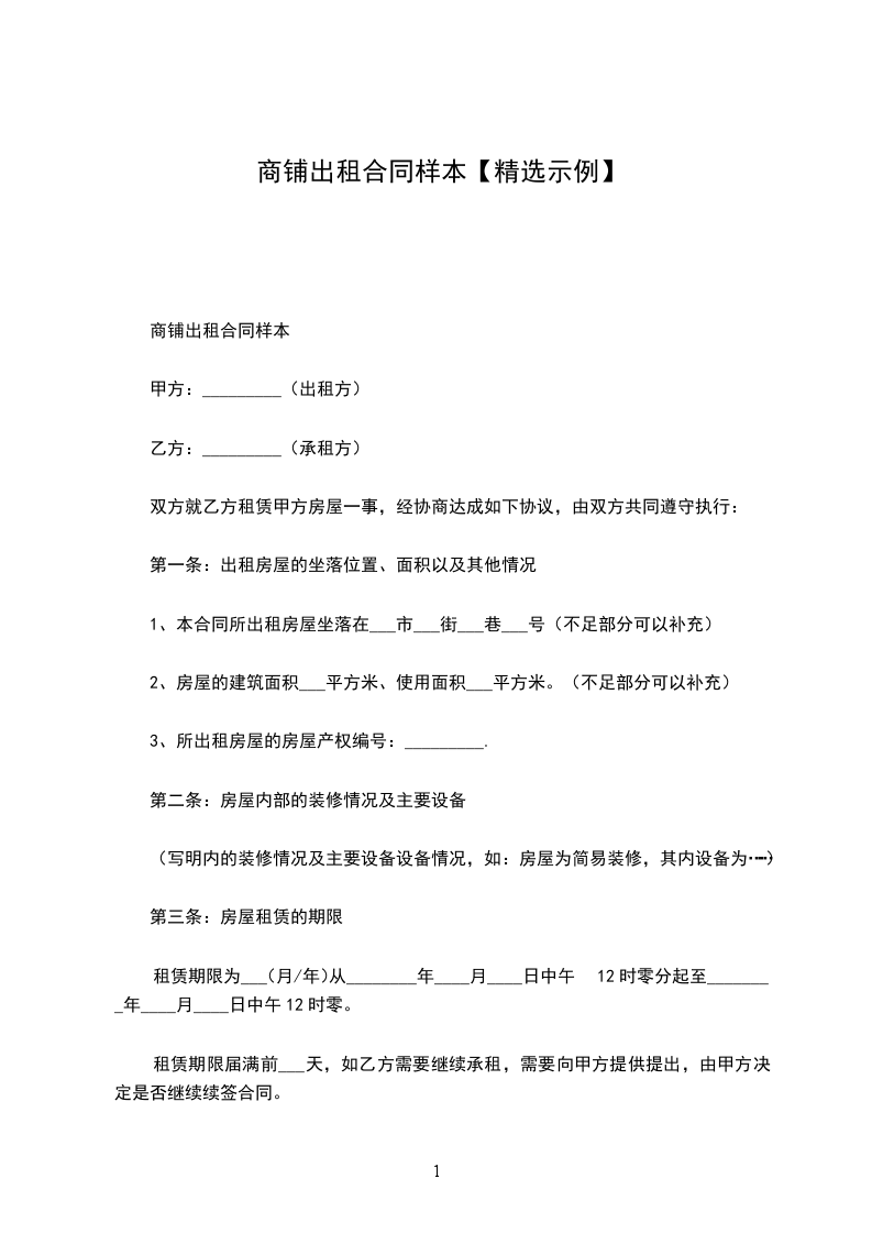 商铺出租合同范文