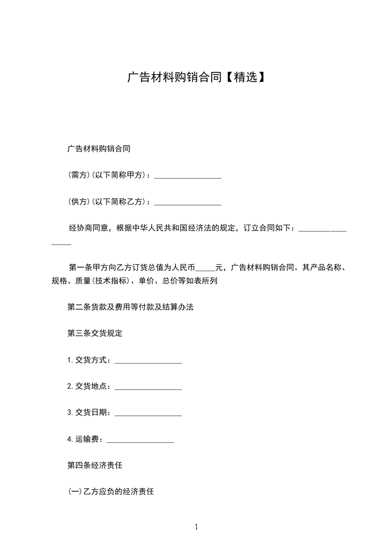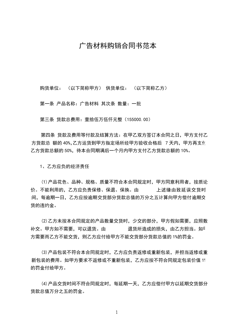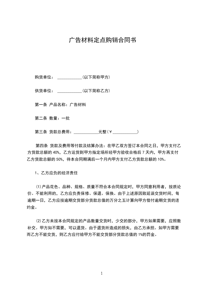 合同范本《广告材料购销合同》
