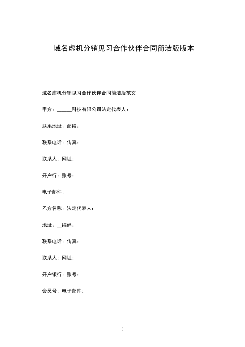 域名虚机分销见习合作伙伴合同简洁版范文