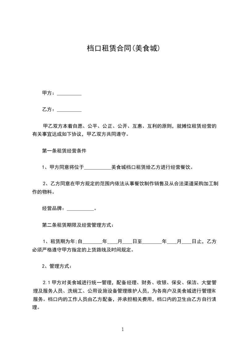 美食档口租赁合同范文