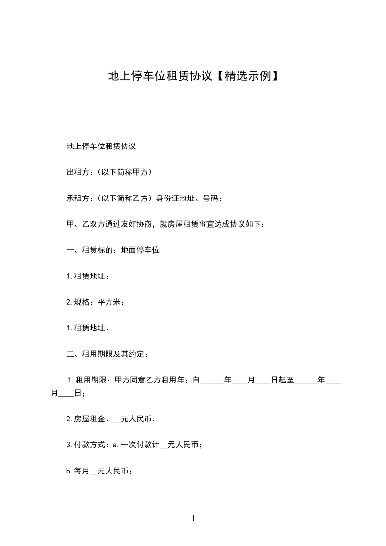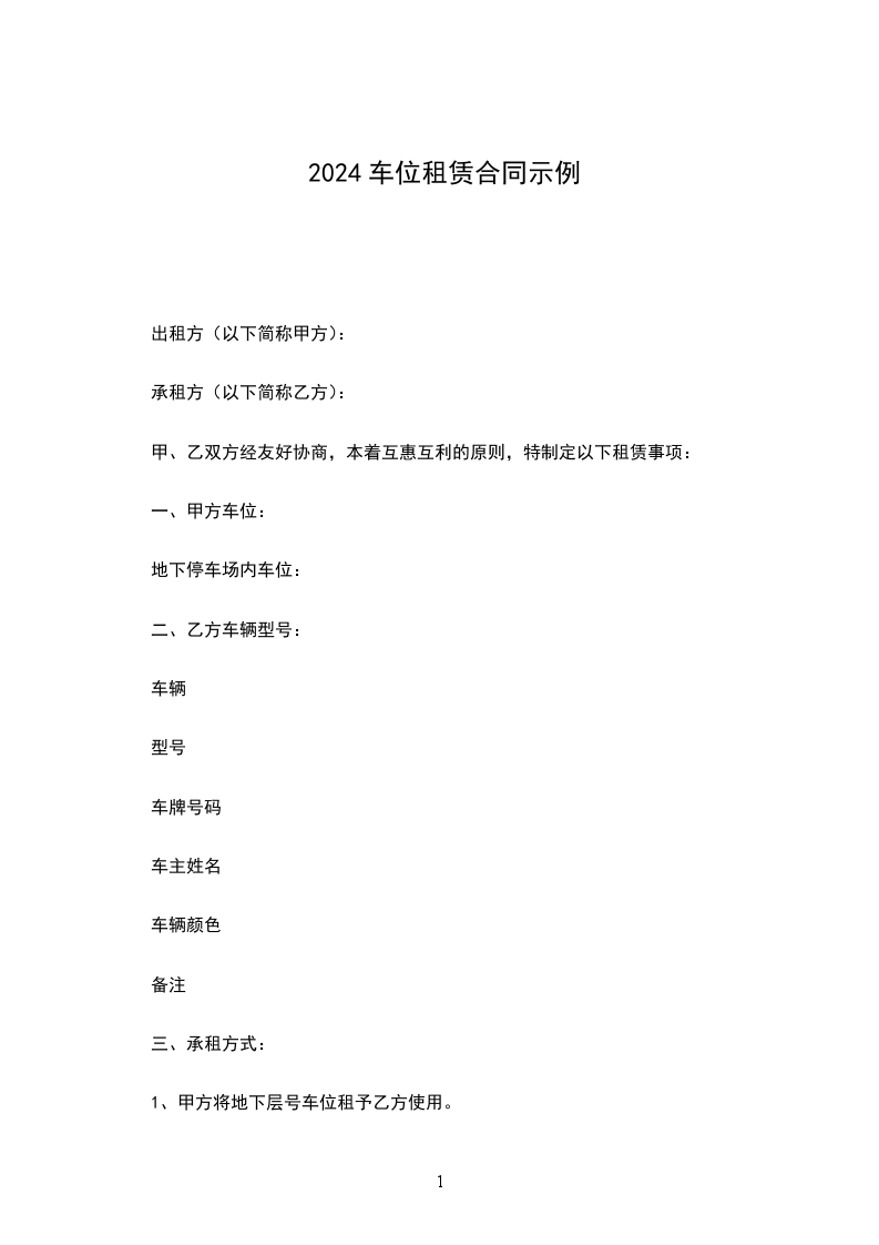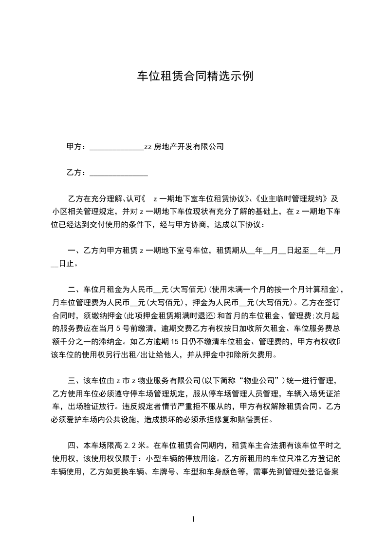 一、本车位租金_________元整/月,大写:____________________.支付方式为____________________.乙方到期如需续租,需提前1个月通知甲方。乙方留存租金收条作为支付凭证,车位管理费用由甲方支付。