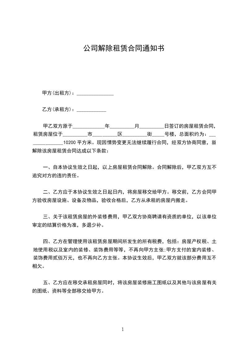 关于公司解除劳动合同通知书范本