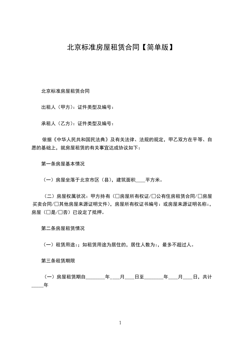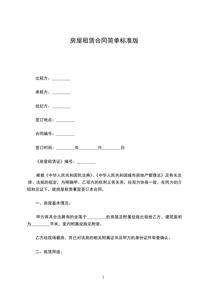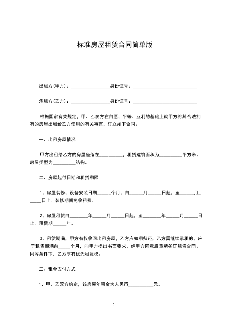 房屋租赁合同标准