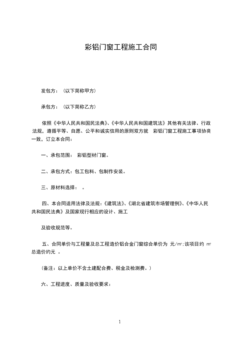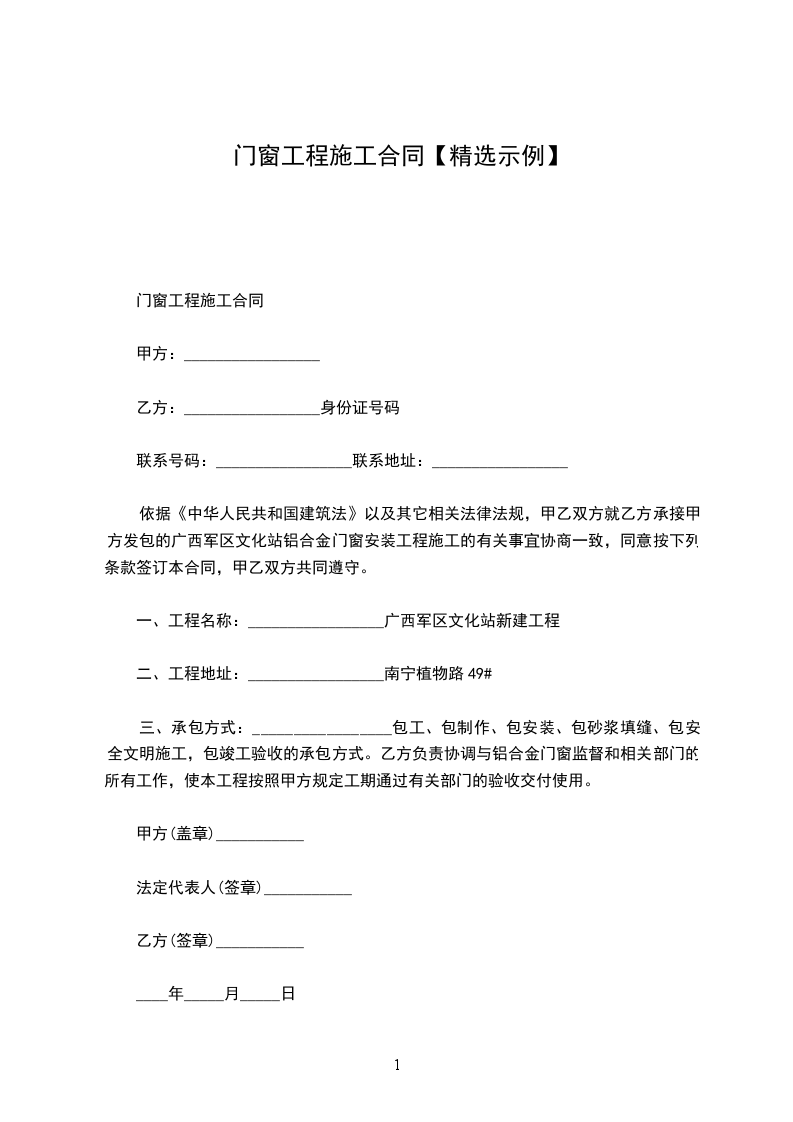 依据《中华人民共和国建筑法》以及其它相关法律法规,甲乙双方就乙方承接甲方发包的广西军区文化站铝合金门窗安装工程施工的有关事宜协商一致,同意按下列条款签订本合同,甲乙双方共同遵守。