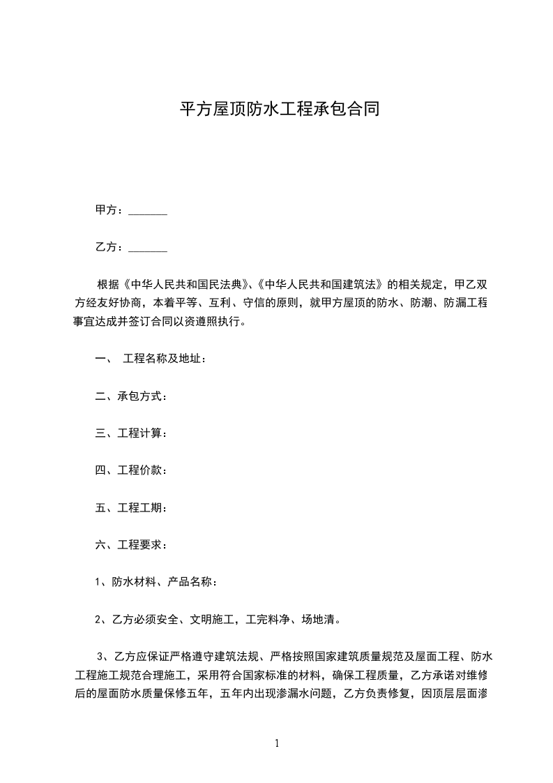 屋顶防水的工程承包合同