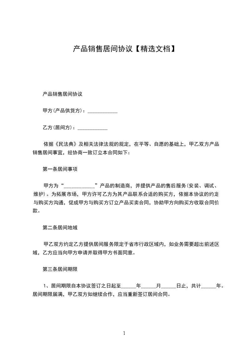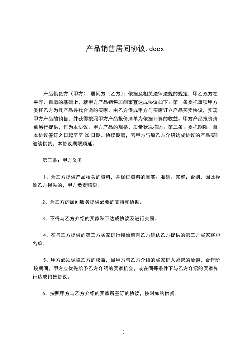 产品销售居间合同