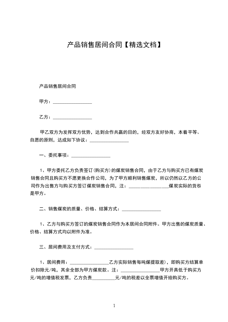 1、居间费用:_________________乙方实际销售每吨煤提取差),即购买方结算单价扣除元/吨,其余全部为甲方煤炭款。注:_________________甲方开具低于购买方元/吨的增值税发票,乙方负责__________元/吨的税差以全票增值开给购买方。