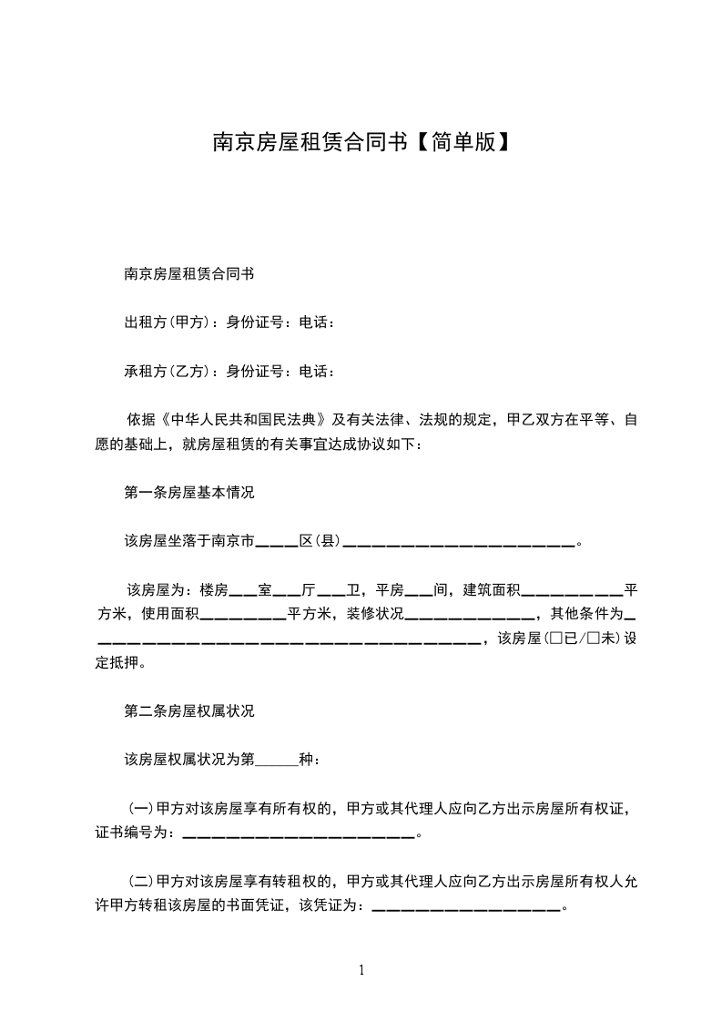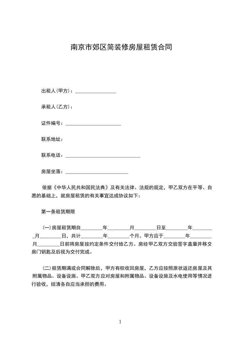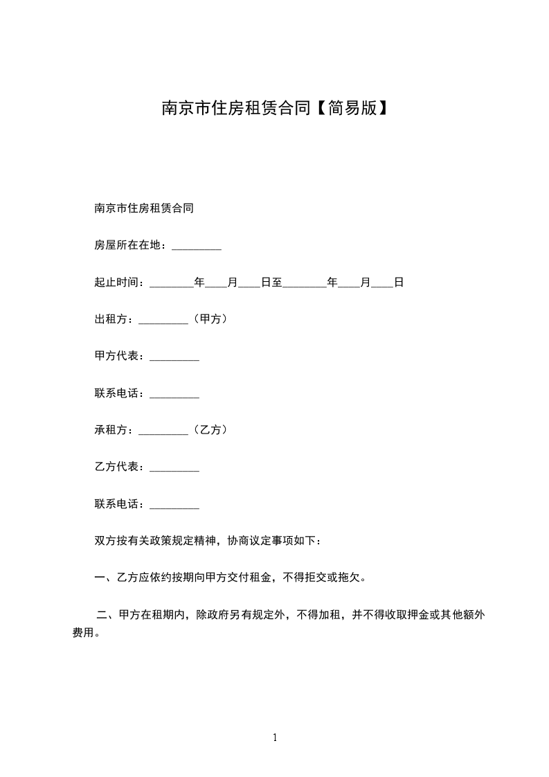 南京市房屋租赁合同