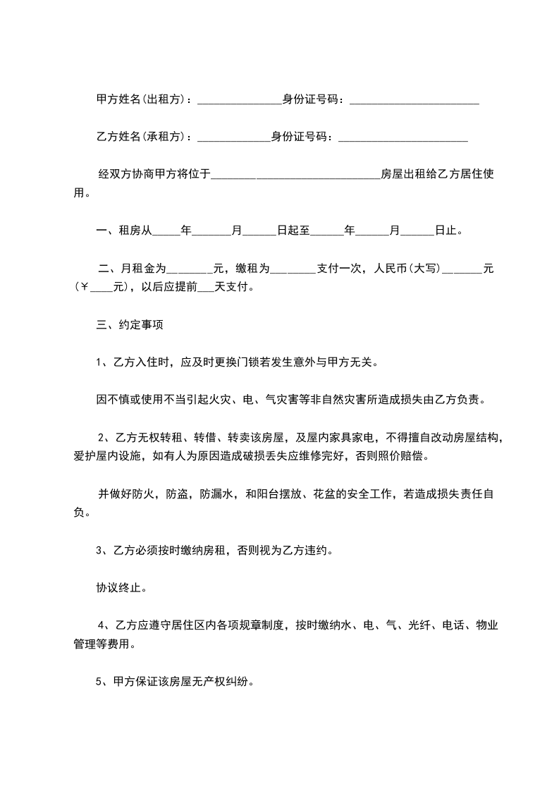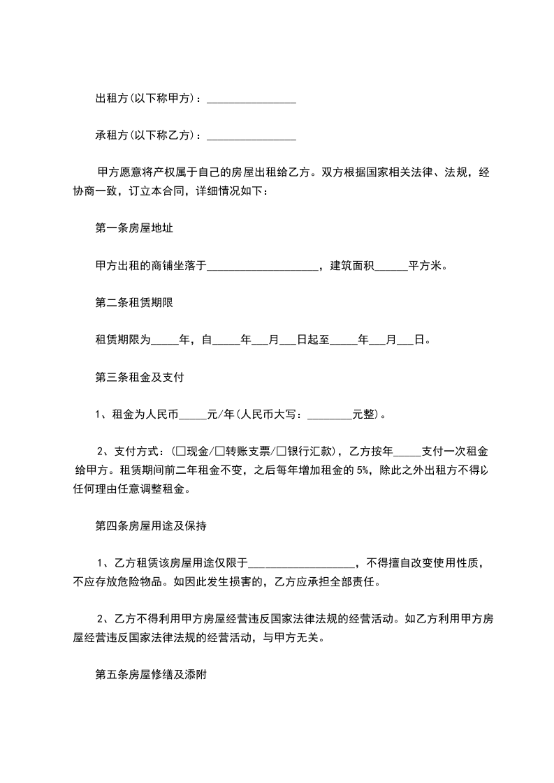 五、租赁期间,乙方不得擅自改变房屋结构、用途。因业务或其他原因需要拆改、添建或改装门面、室内装饰等,应事先征得甲方同意,议定今后处理办法,并另签协议(一式三份,其中一份报房管部门备案)。