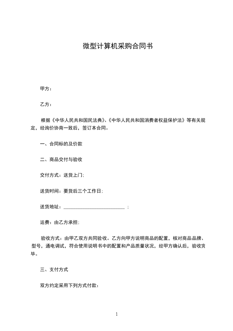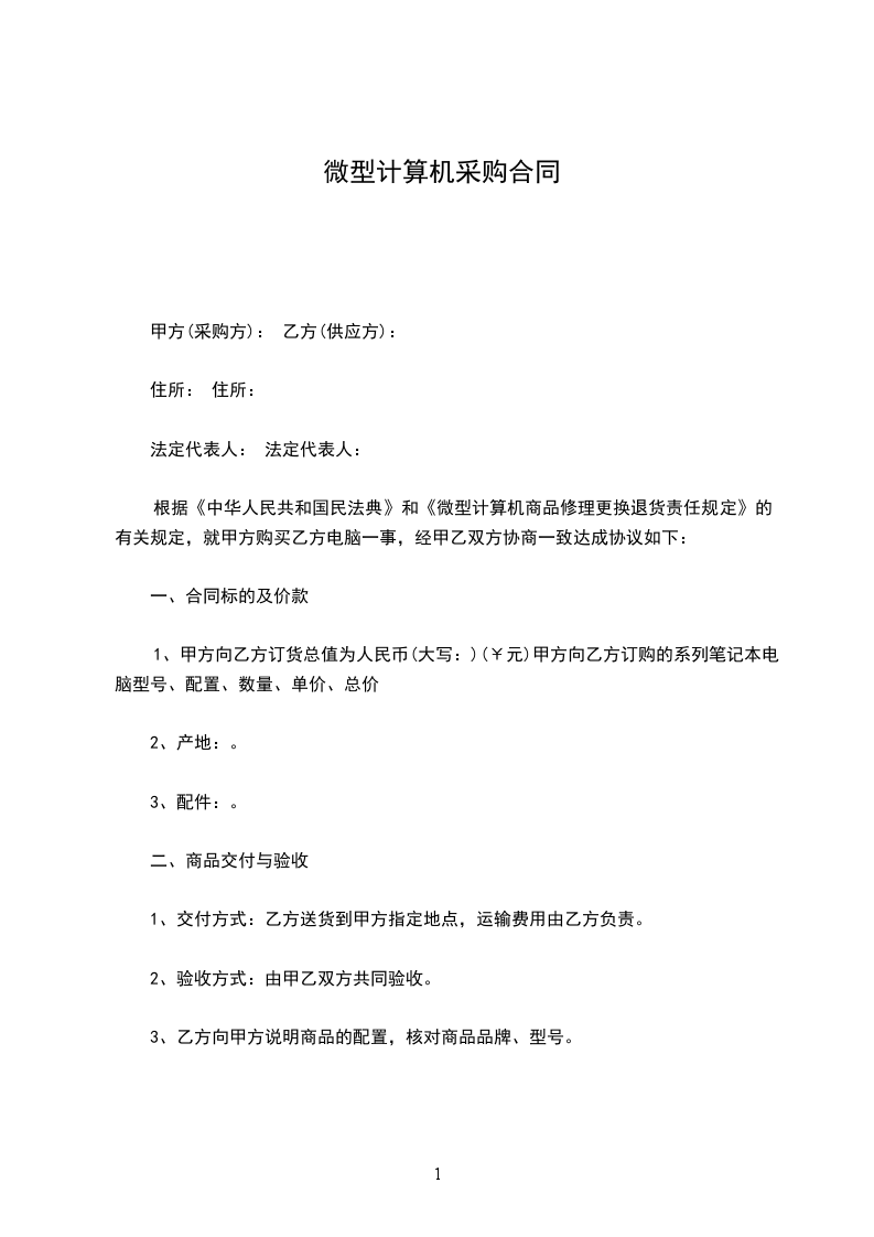 根据《中华人民共和国民法典》和《微型计算机商品修理更换退货责任规定》的有关规定,就甲方购买乙方电脑一事,经甲乙双方协商一致达成协议如下: