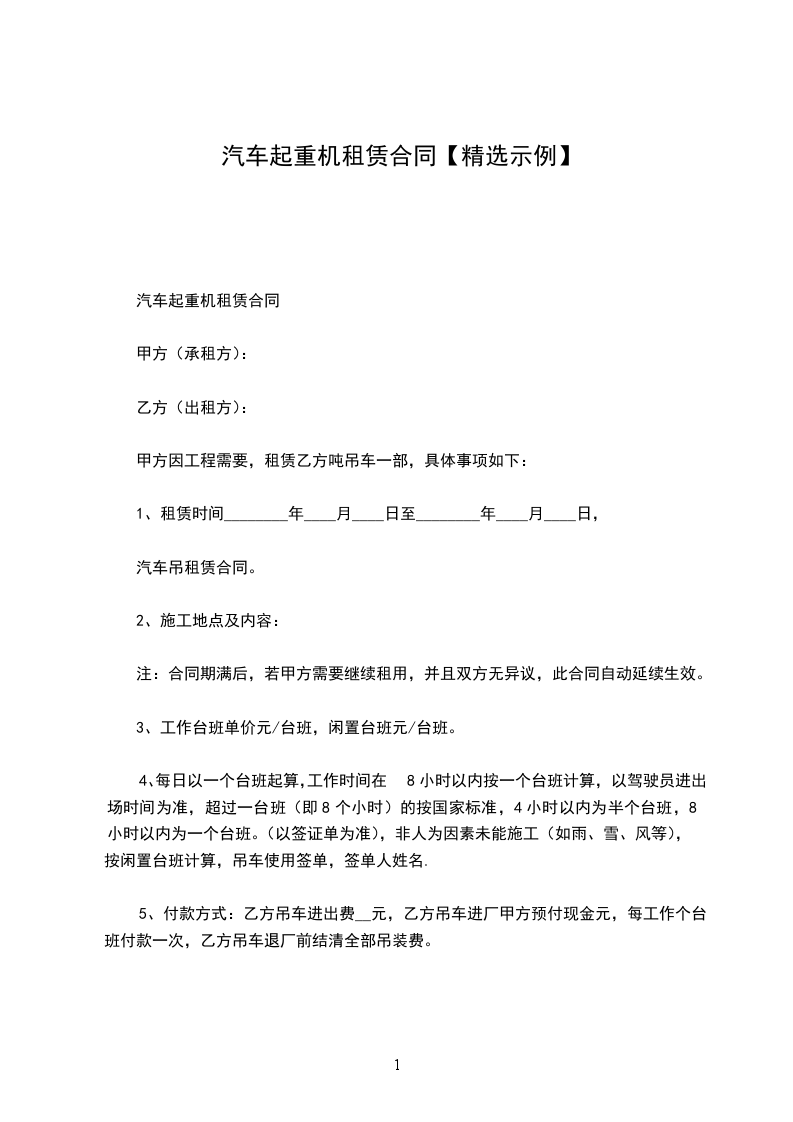 汽车起重机租赁合同