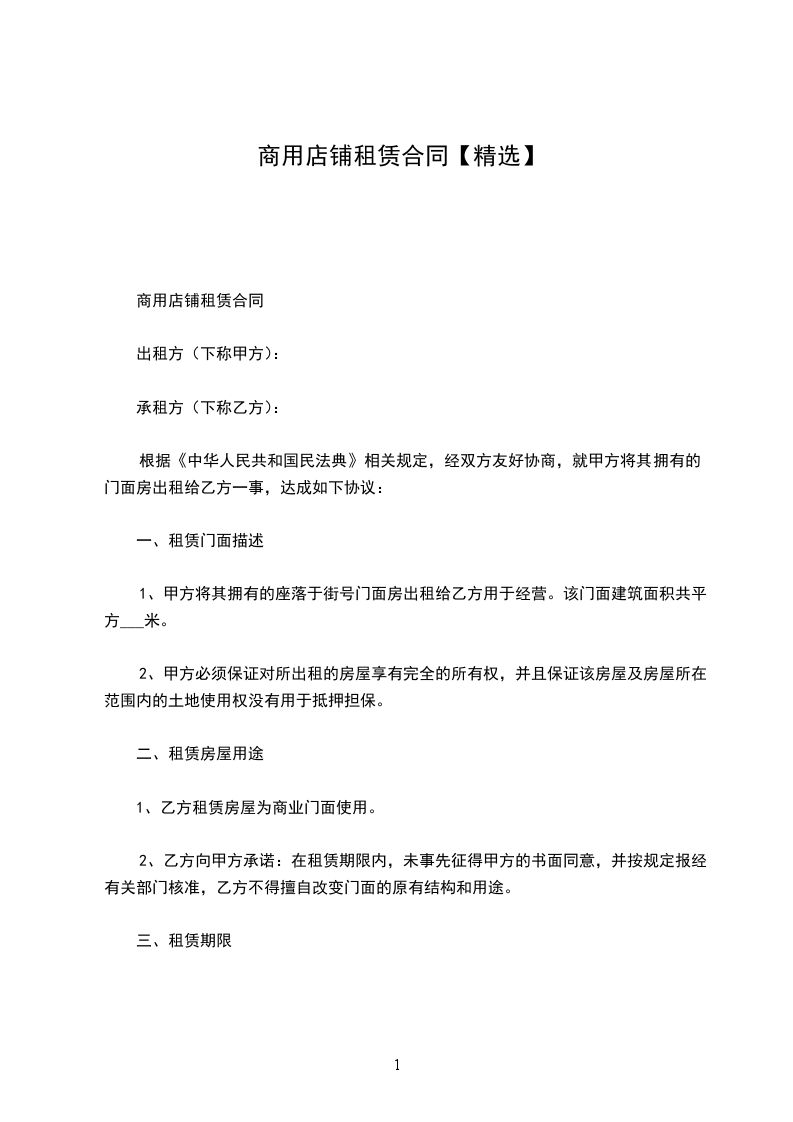 商用店铺租赁合同