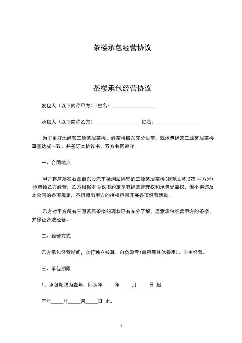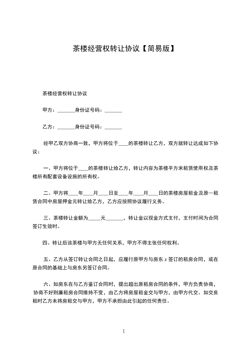 茶楼经营权转让协议