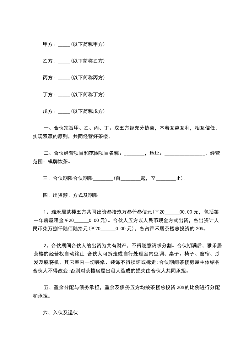 三、茶楼转让金额为_____元_______,转让金以现金方式支付,支付时间为合同签订生效时。