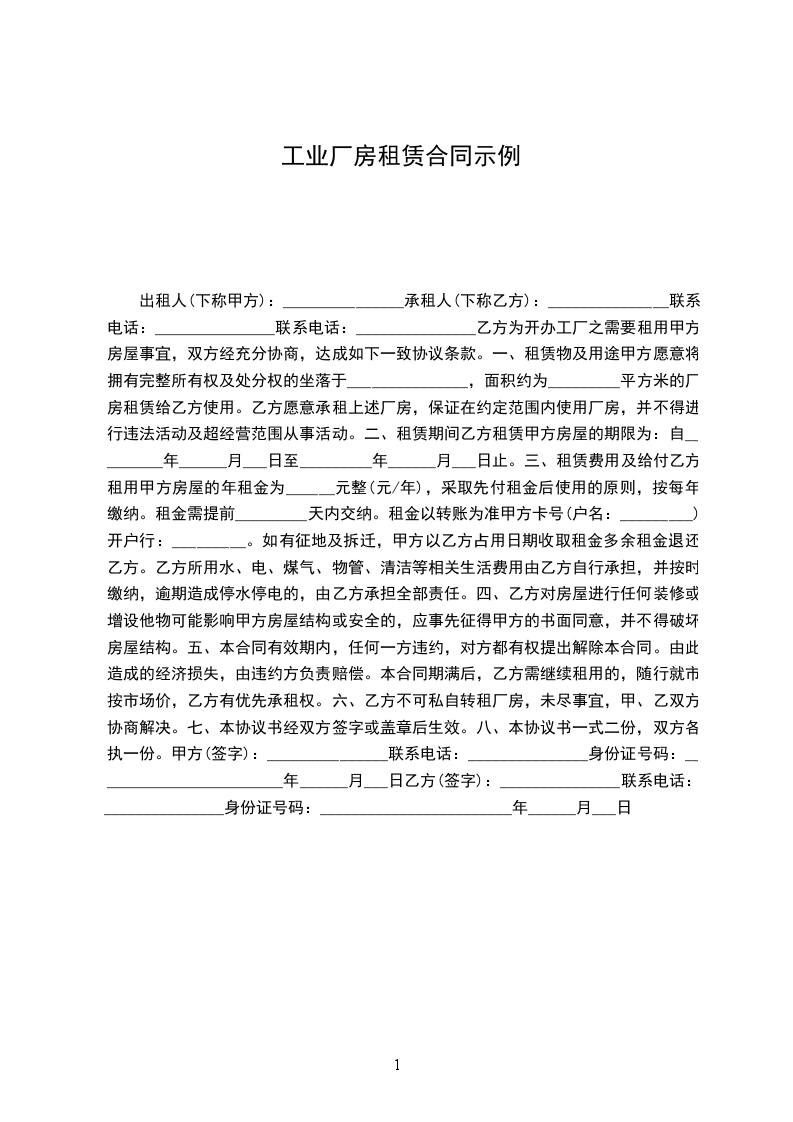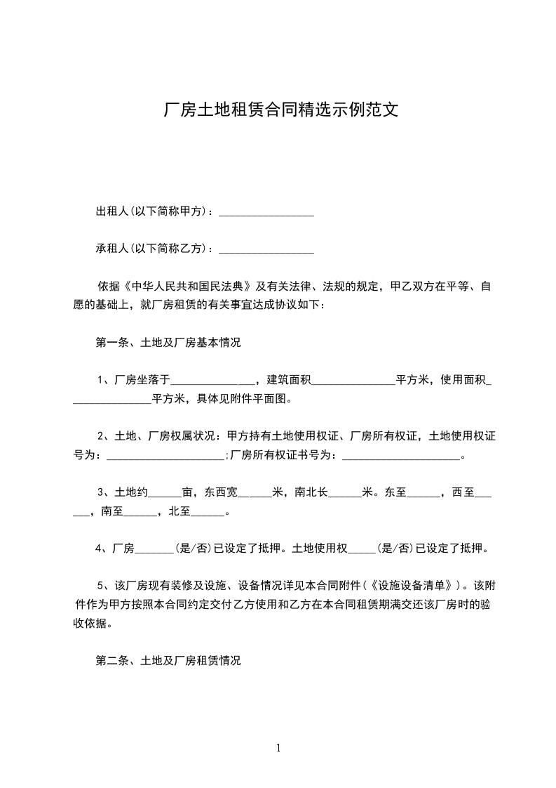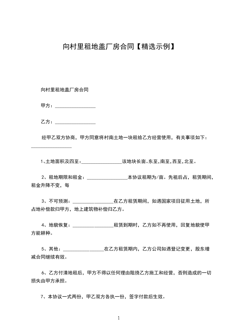 厂房租地合同