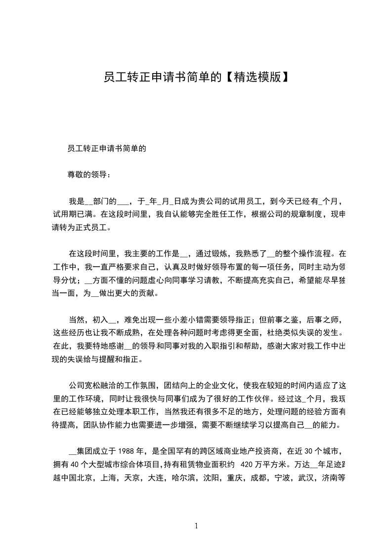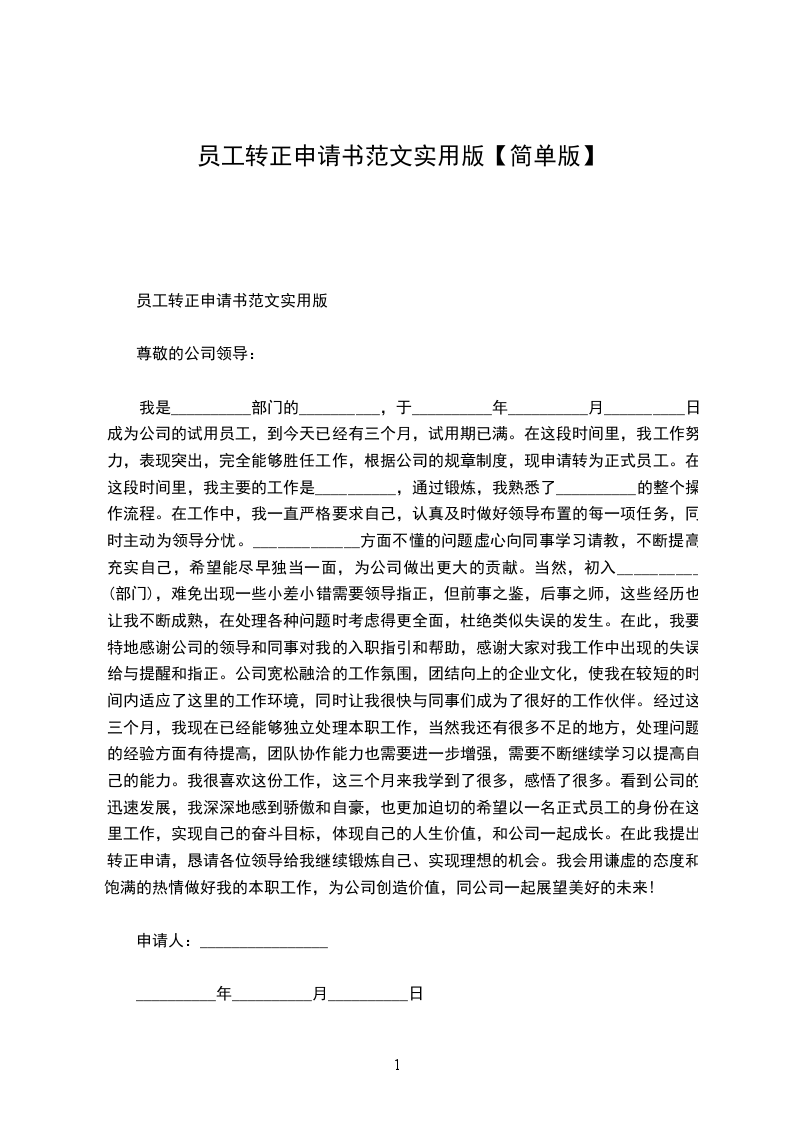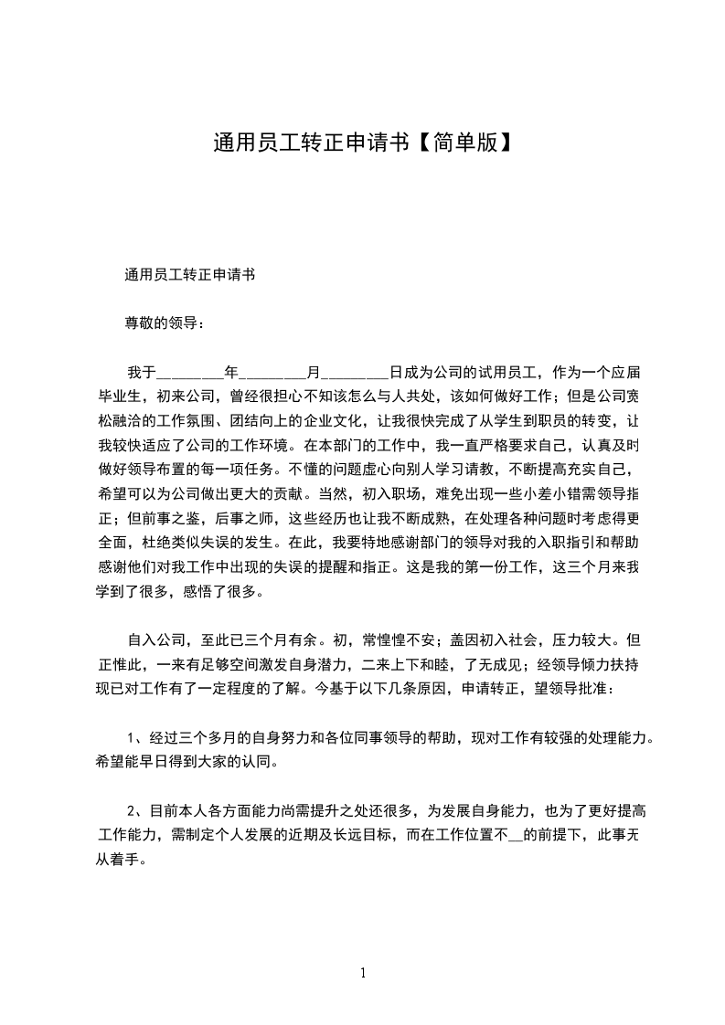 通用员工转正申请书