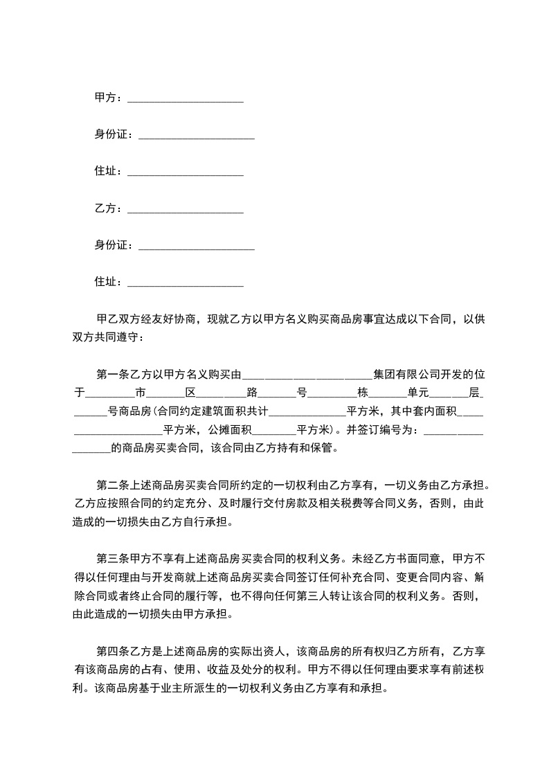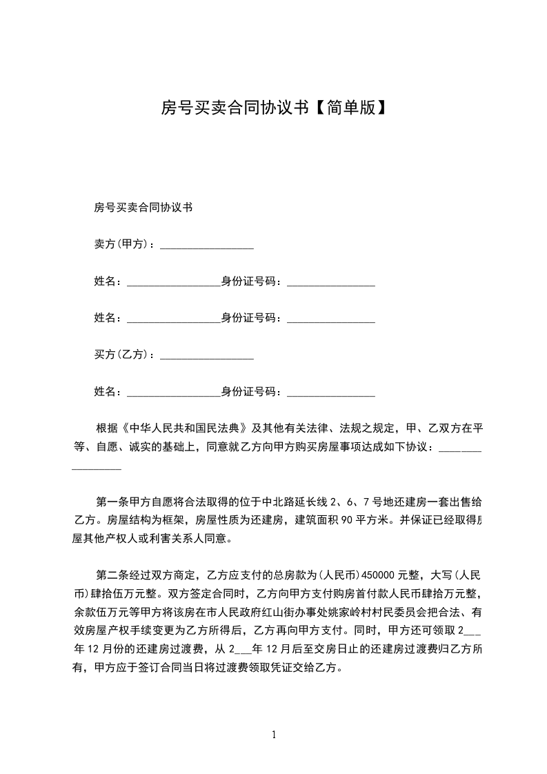 房号买卖合同怎写