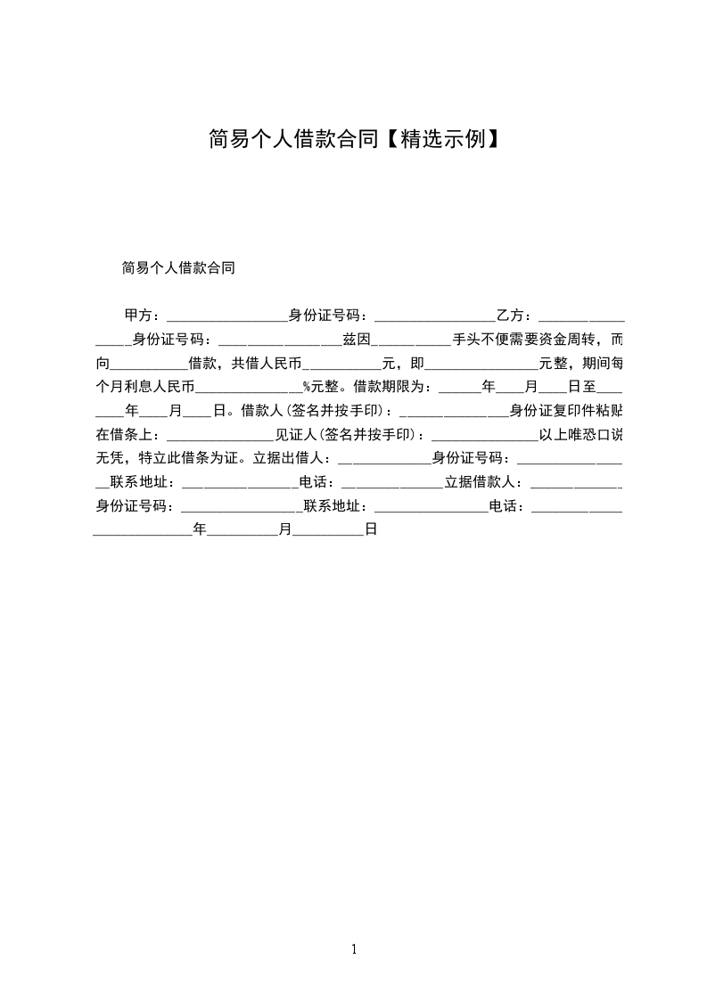 甲方:_________________身份证号码:_________________乙方:_________________身份证号码:_________________兹因___________手头不便需要资金周转,而向___________借款,共借人民币___________元,即________________元整,期间每个月利息人民币_______________%元整。借款期限为:______年____月____日至________年____月____日。借款人(签名并按手印):_______________身份证复印件粘贴在借条上:_______________见证人(签名并按手印):_______________以上唯恐口说无凭,特立此借条为证。立据出借人:_____________身份证号码:_________________联系地址:________________电话:______________立据借款人:_____________身份证号码:_________________联系地址:________________电话:___________________________年__________月__________日