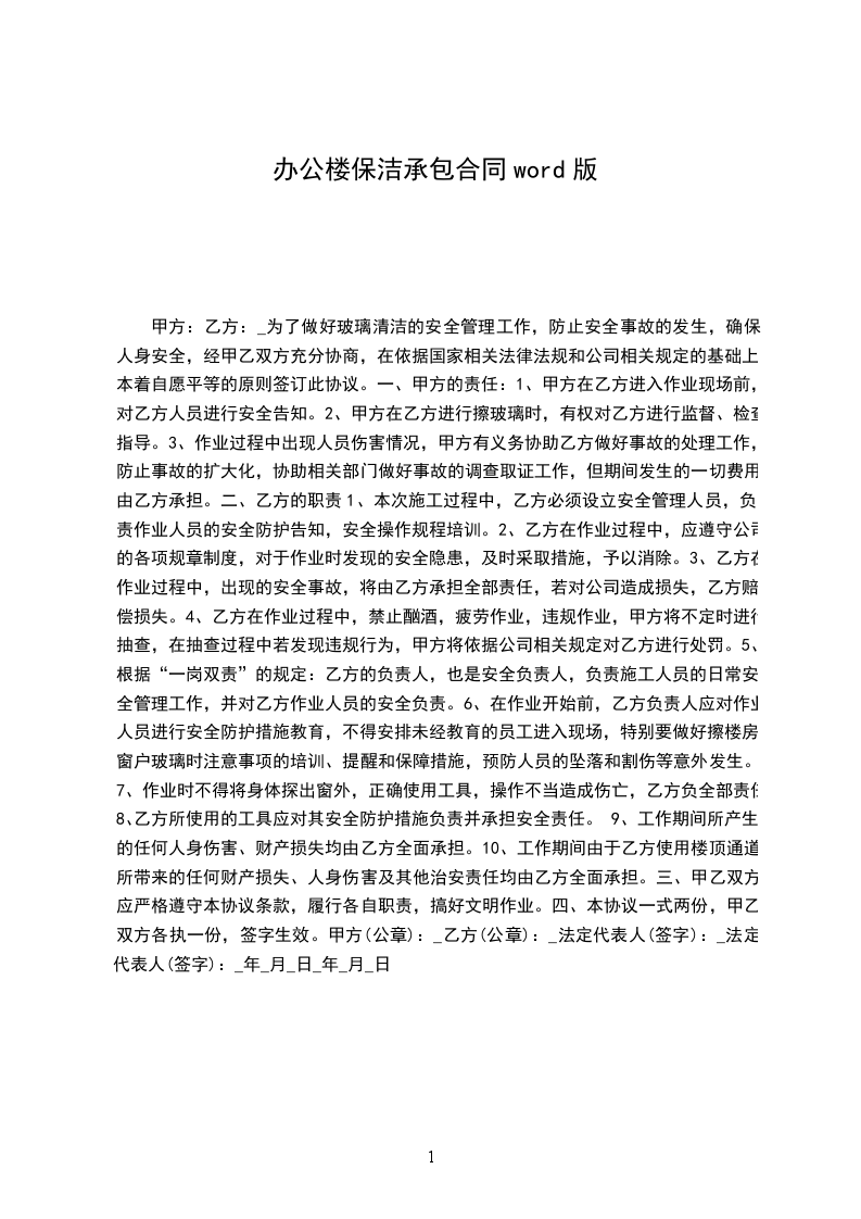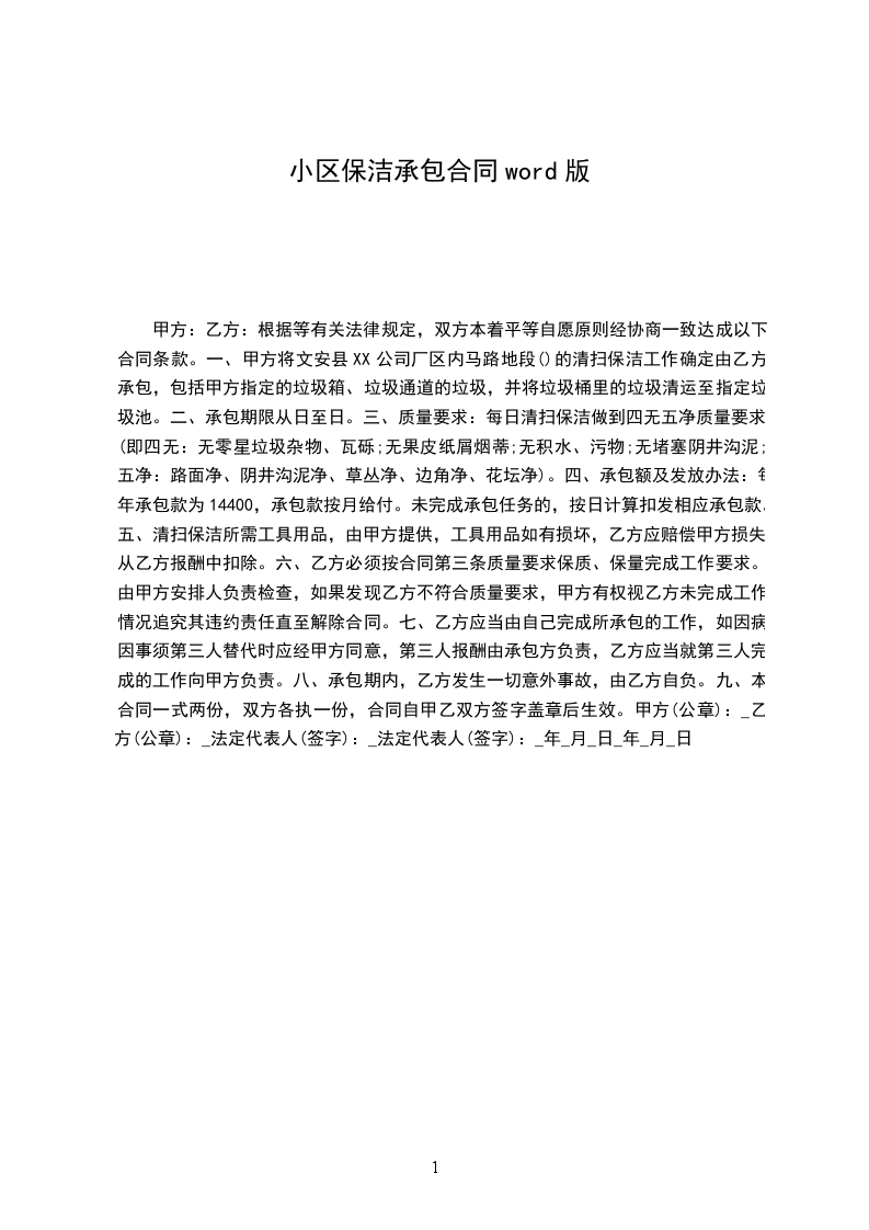 1.保洁承包时间从__________年__________月__________日起至__________年__________月__________日