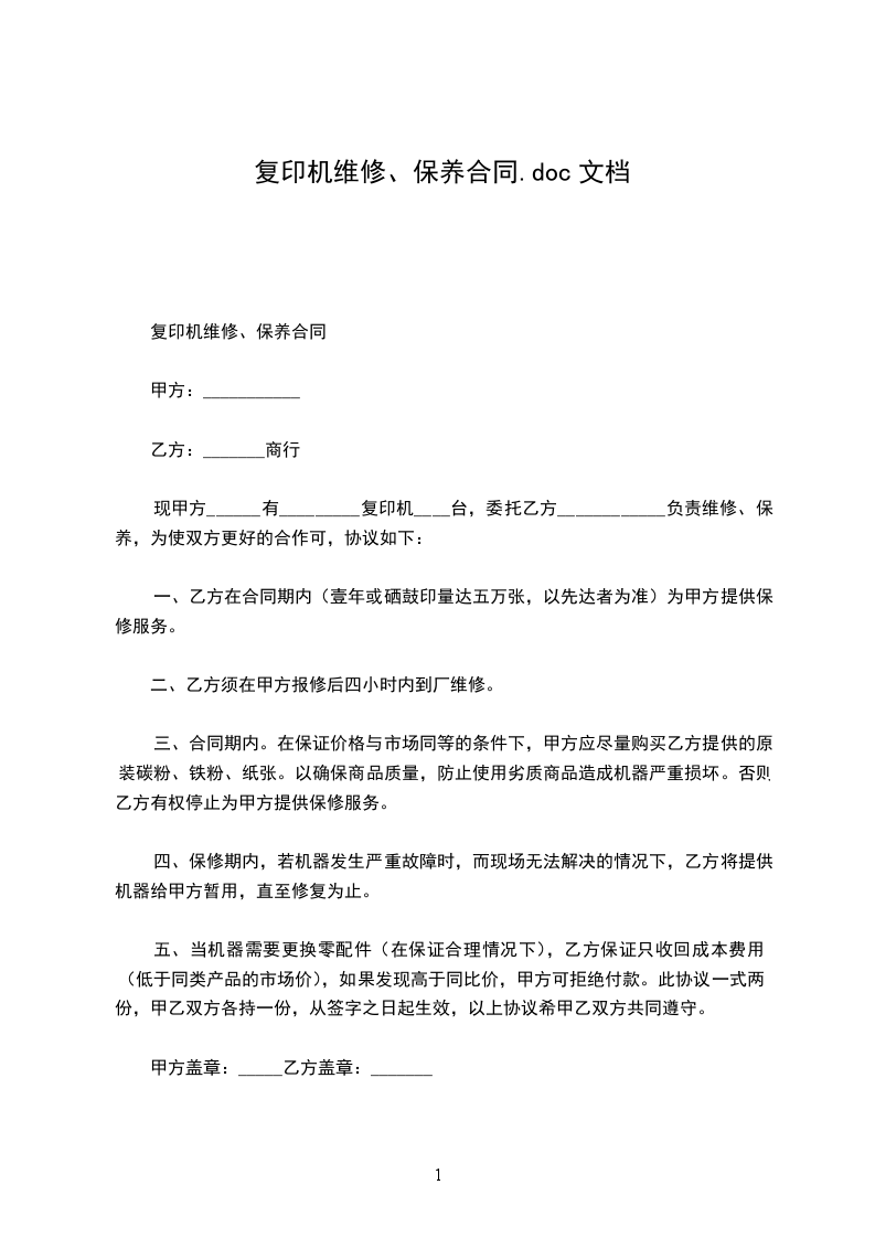 现甲方______有_________复印机____台,委托乙方____________负责维修、保养,为使双方更好的合作可,协议如下: