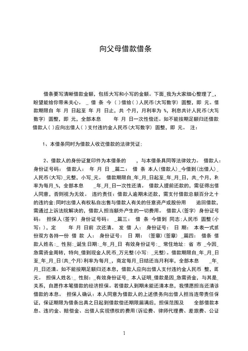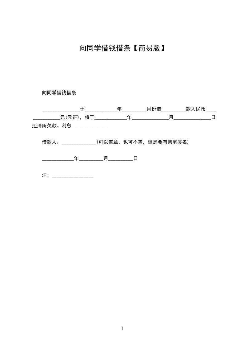 特向公司申请借条