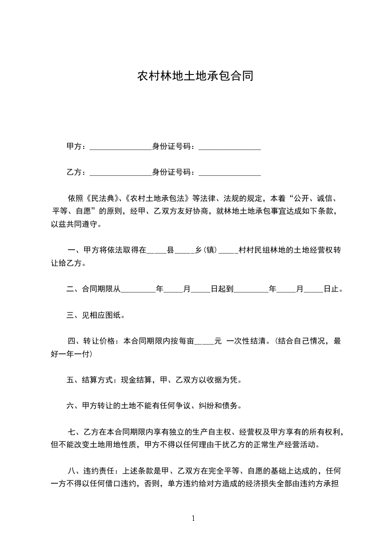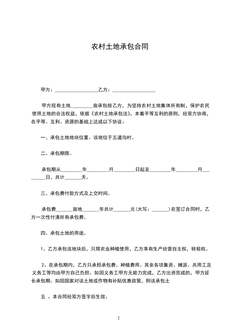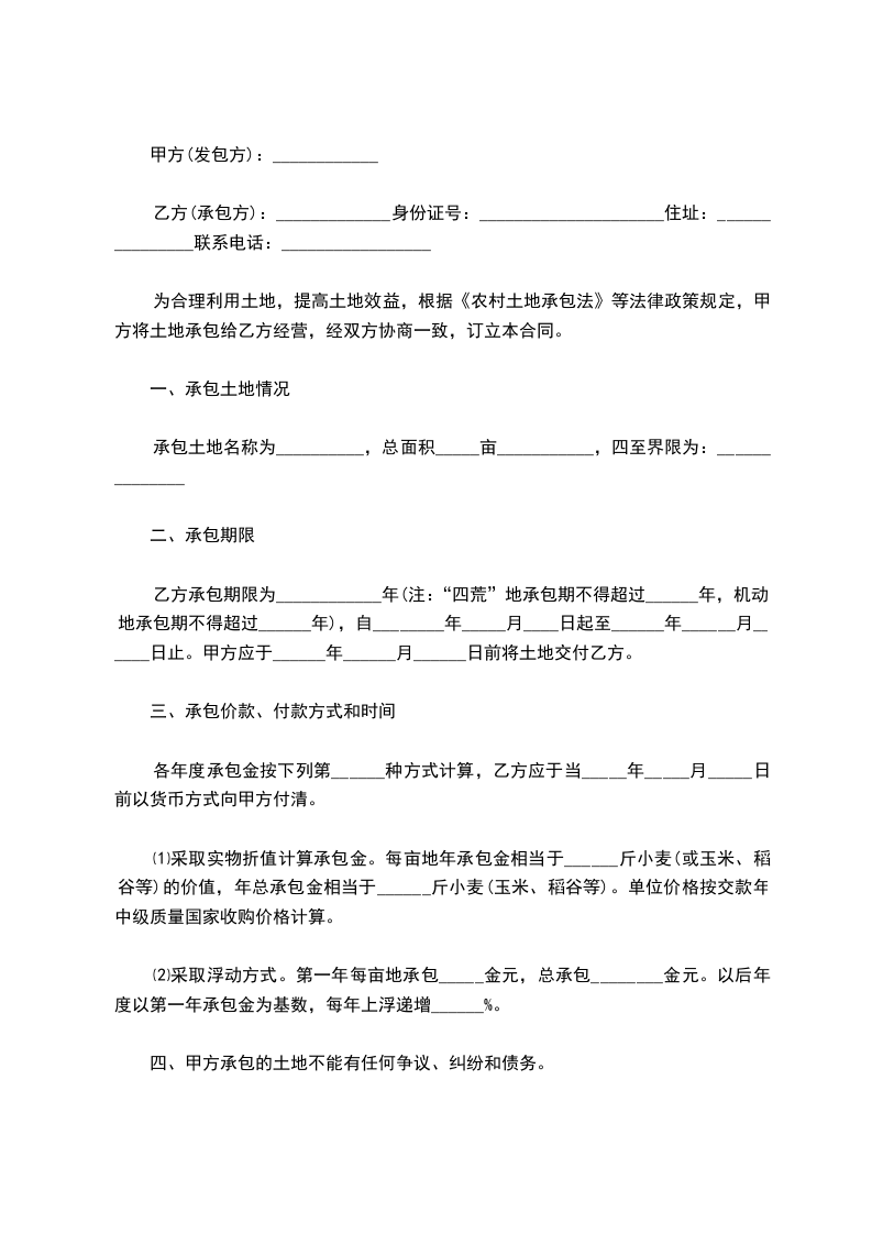 农村承包土地合同格式