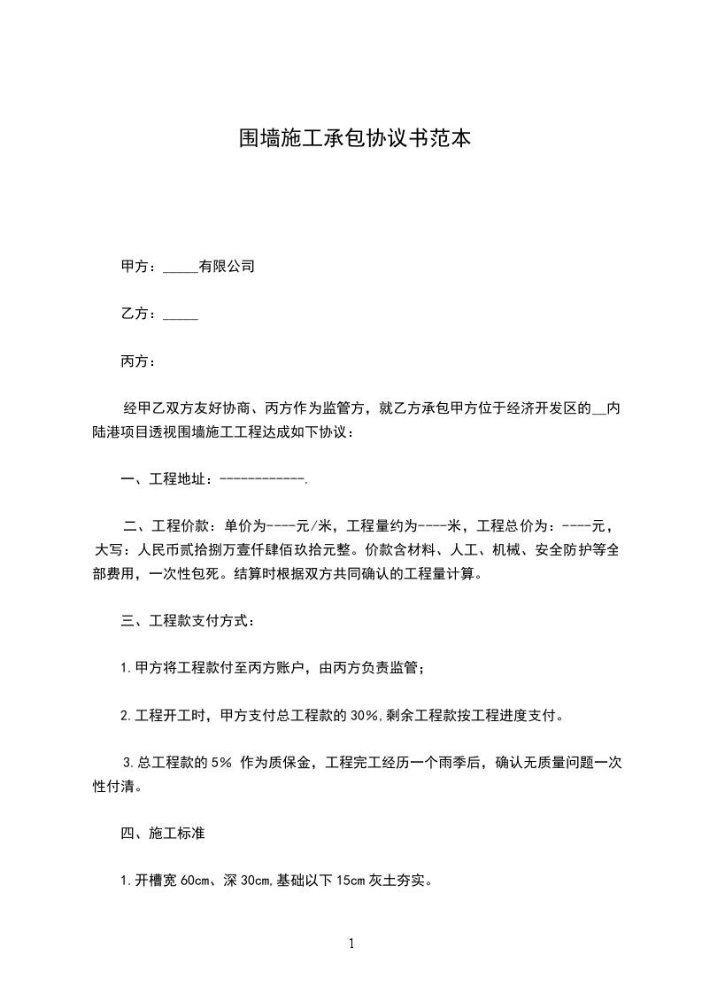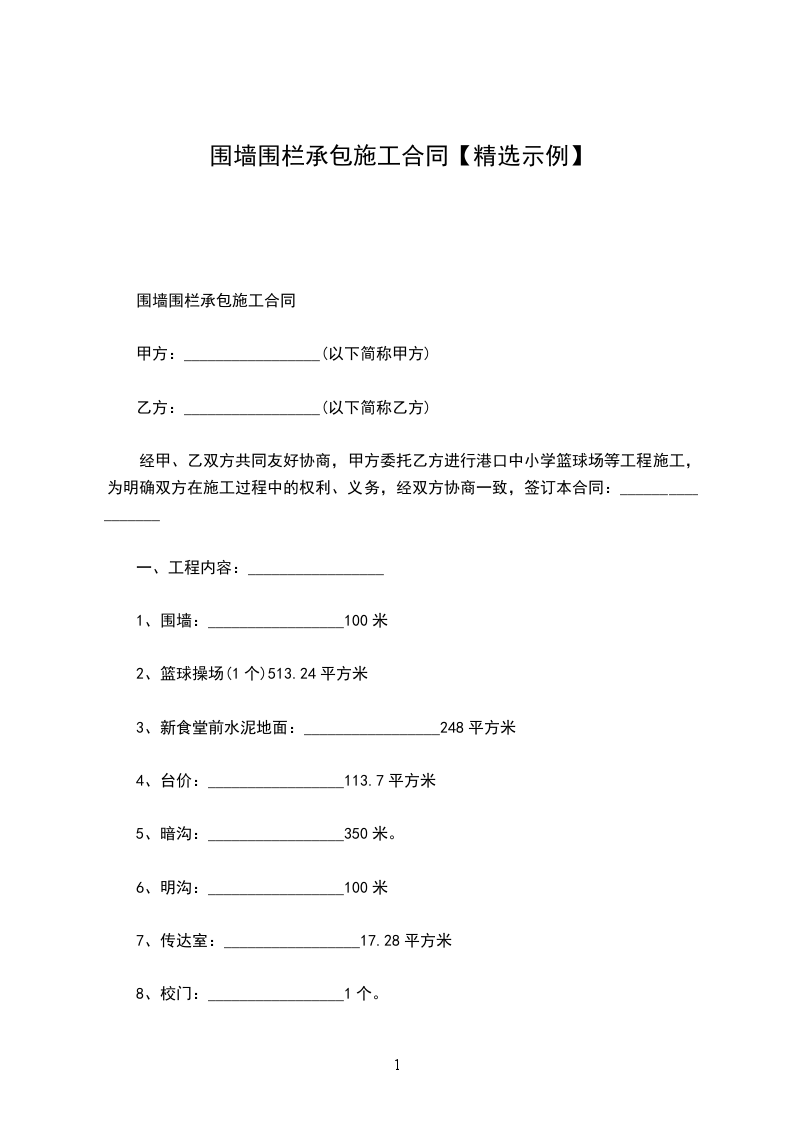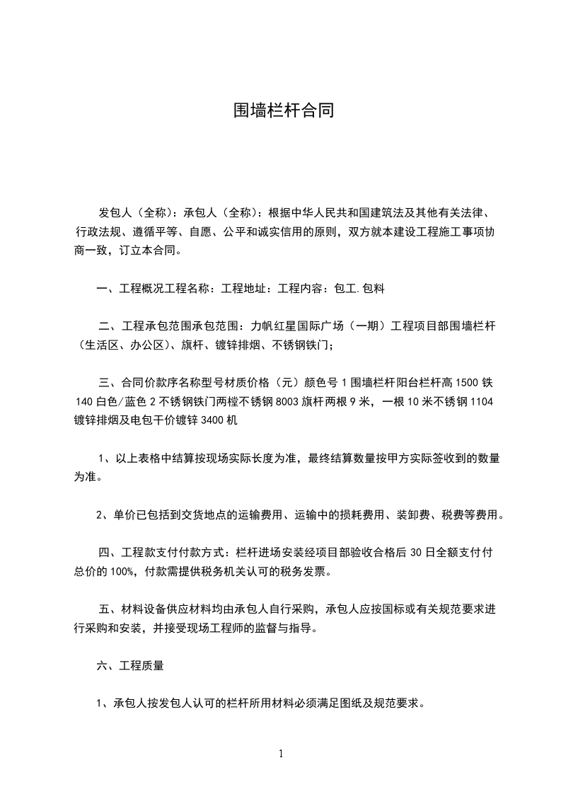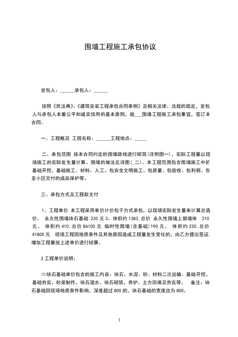 围墙围栏承包施工合同