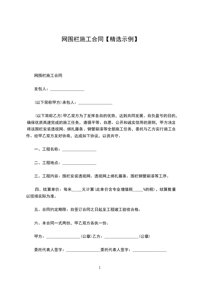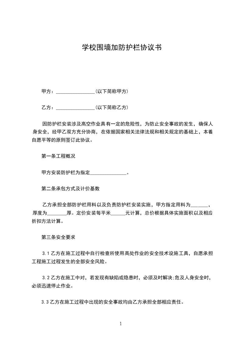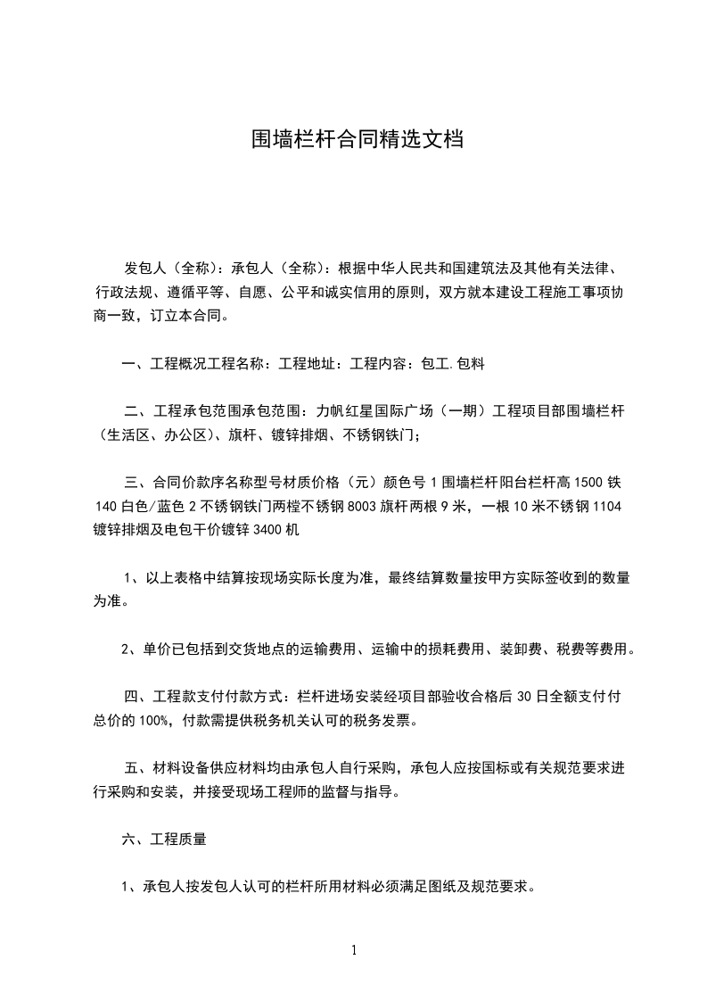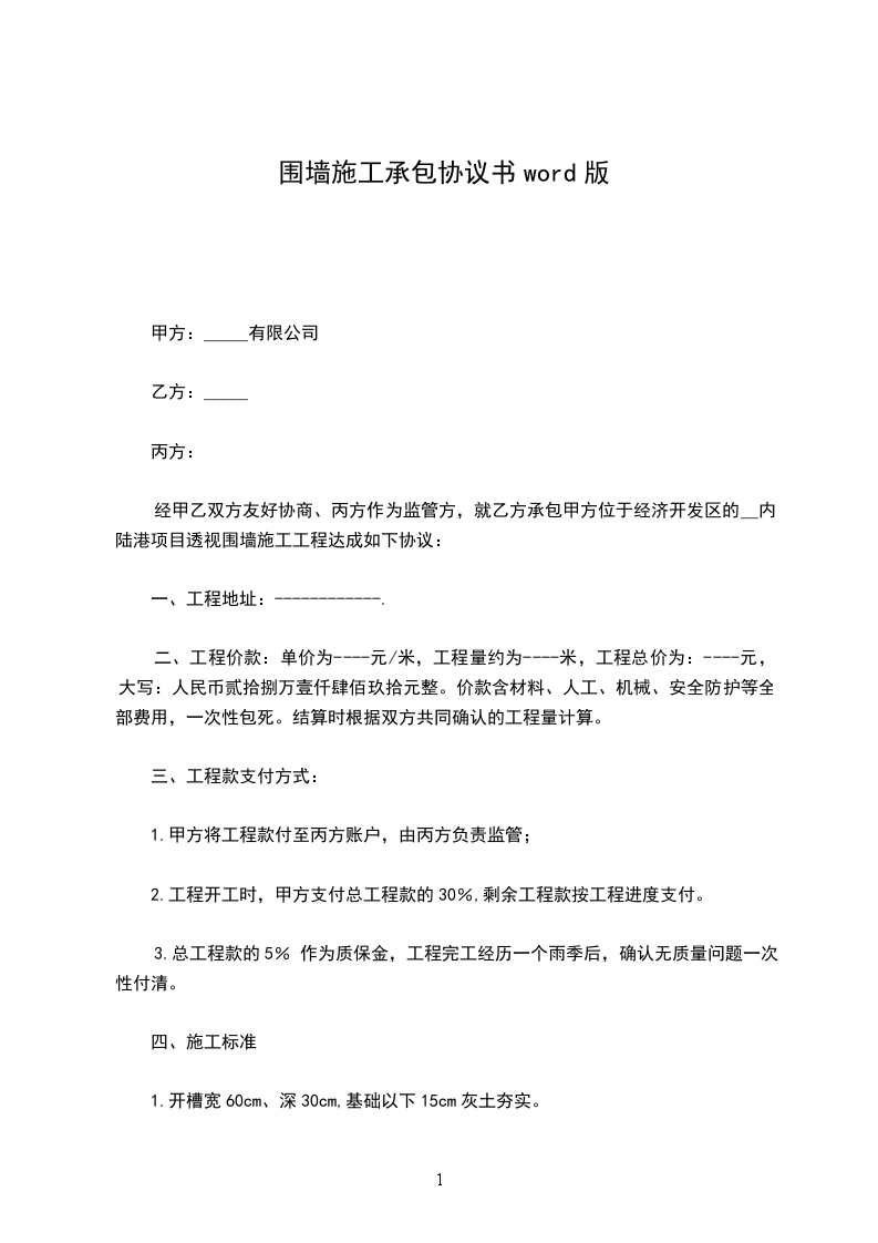 围墙围栏承包施工合同
