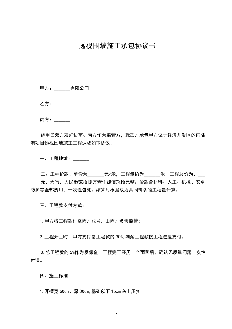 3、由于本地块地质原因,乙方必须对围墙基础进行处理并承担一切费用,以保证围墙的安全建设和使用。